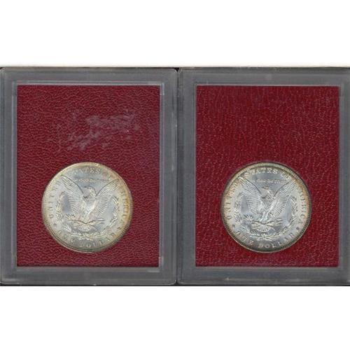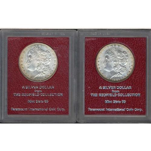 <b>Lot of Two Redfield Morgan Dollars. Both Net grade MS63.</b> Includes an 1896 MS65 Redfield Morgan dollar and an 1897 MS65 Redfield Morgan dollar. Both net grade MS63. Lot of 2 coins.
