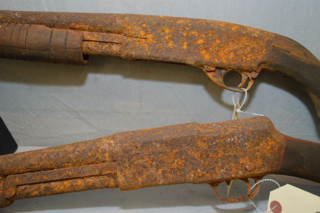 Lot of Two Rusted Solid Pump Action Shotguns - Relic Status - NO PAL REQ