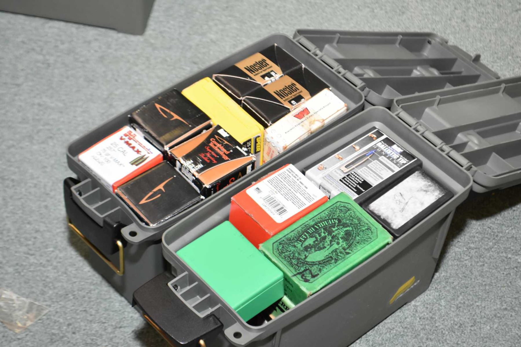 Lot of Two Small Green Plastic Ammo Boxes : Full of Bullets .257 Diam