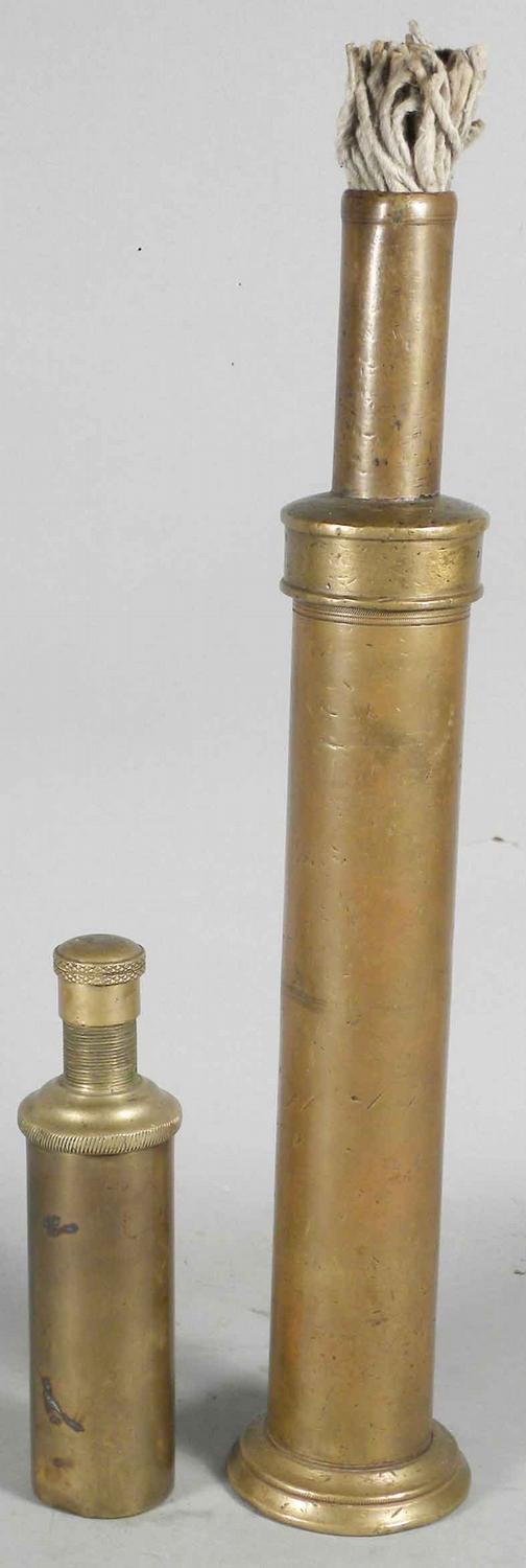 Lot of Two Steamer Torches. Brass with wicks, small one has lid. Very good condition. 15 and 7 inches.