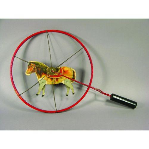 Lot of Two Toy Push Wheels, one with bell and one with horse. Very good original condition. Wheel diameter is 13 inches.