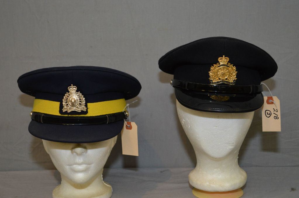 Lot of Two VIntage RCMP Hats [ One RCMP Transport GRC, Principal Cap Service Blue April 1965 Size 7 - William Scully RCMP 7 1/8 Snaith R.O. Troop # 6