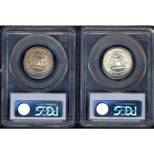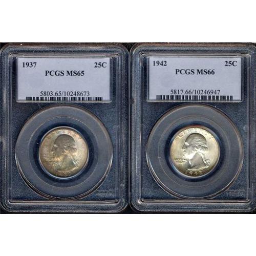 <b>Lot of Two Washington Quarter Dollars.</b> Includes: 1937 PCGS MS65 and 1942 PCGS MS66. Lot of 2 coins. <i>