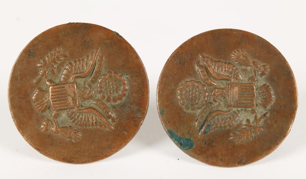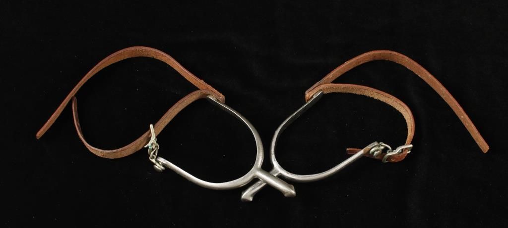 (1) Pair 1916 Spur Straps. Marked "R.I.A. 1916". (2) Pieces Lariat Metal Only Model 1904. Dated 1908. Marked "R.I.A." Also includes (1) Pair of US Calvary Rosettes. Circa 1910. With some aging to metal, however in overall fair condition.