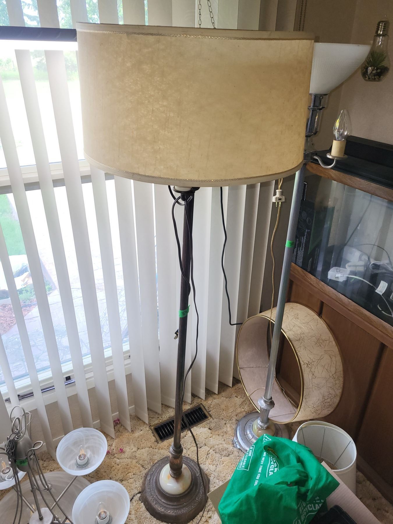 37 Mid Century Floor Lamp with Glass Shade + 2 Other Shades