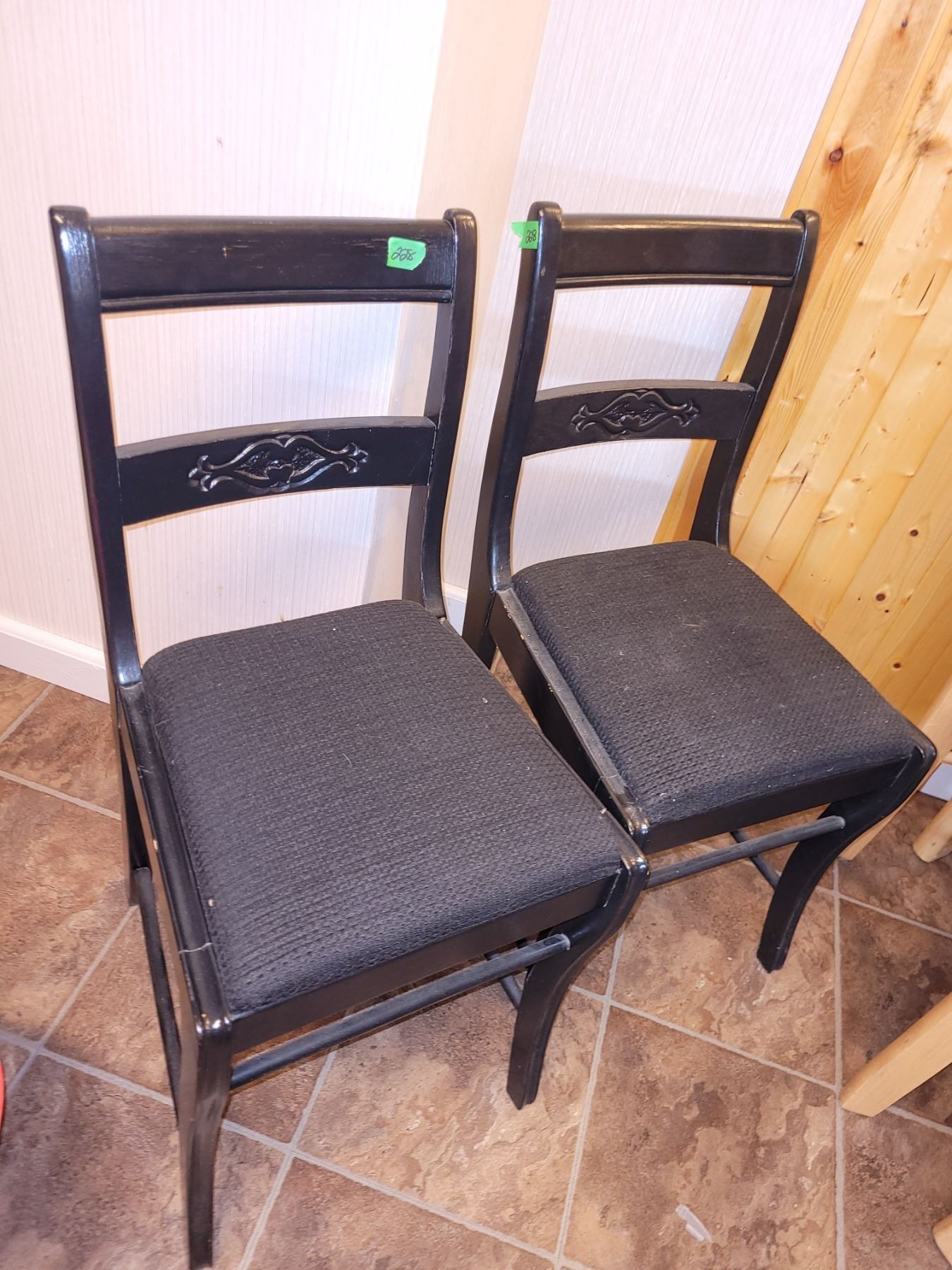 228 Pair of Antique Black Padded Chairs - Both Measure 14x17x33"