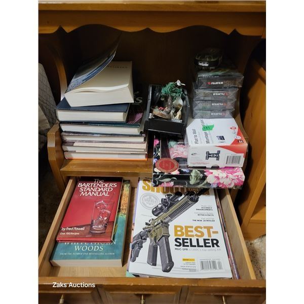 Lot 44 Contents of Nightstand - Books, Sealed VHS Blank Tapes, TV Wall Mount +