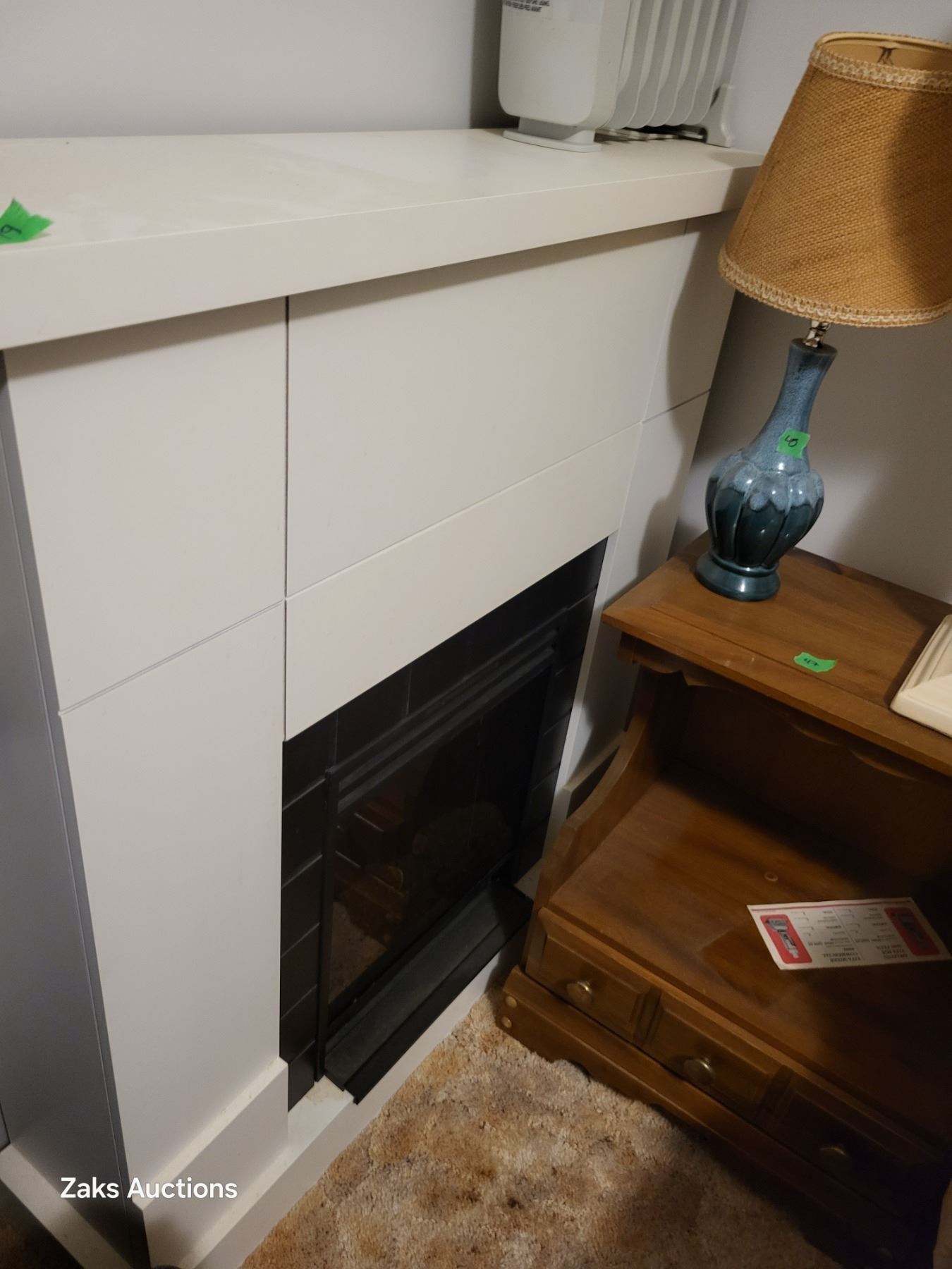 Lot 49 Near New White Electric Fireplace Heater with Granite Top - Measures