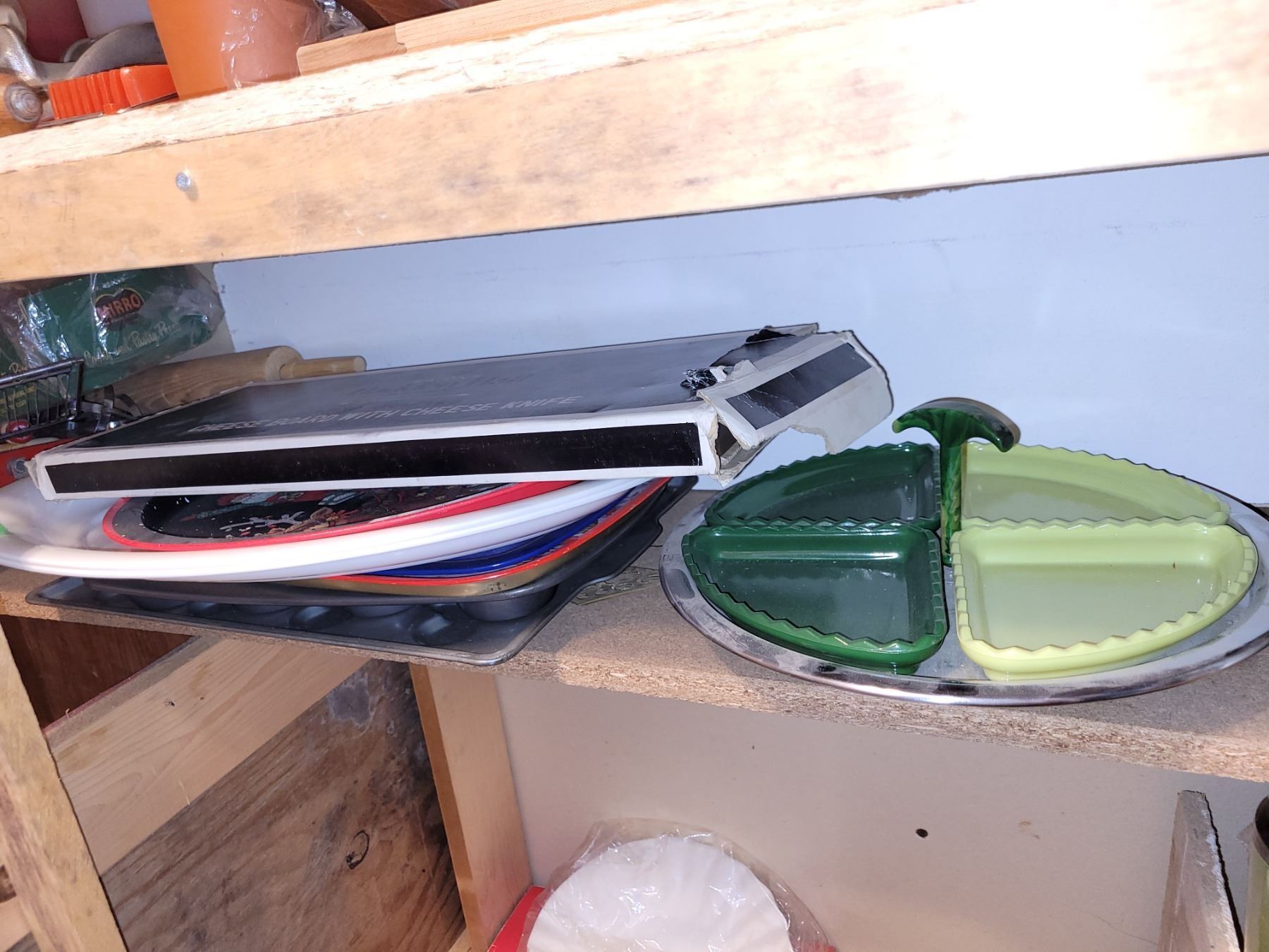 264 Lot of Vintage Kitchen Items - Boxed Haddon Hall Cheese Board, Serving Rays, Appetizer Tray +