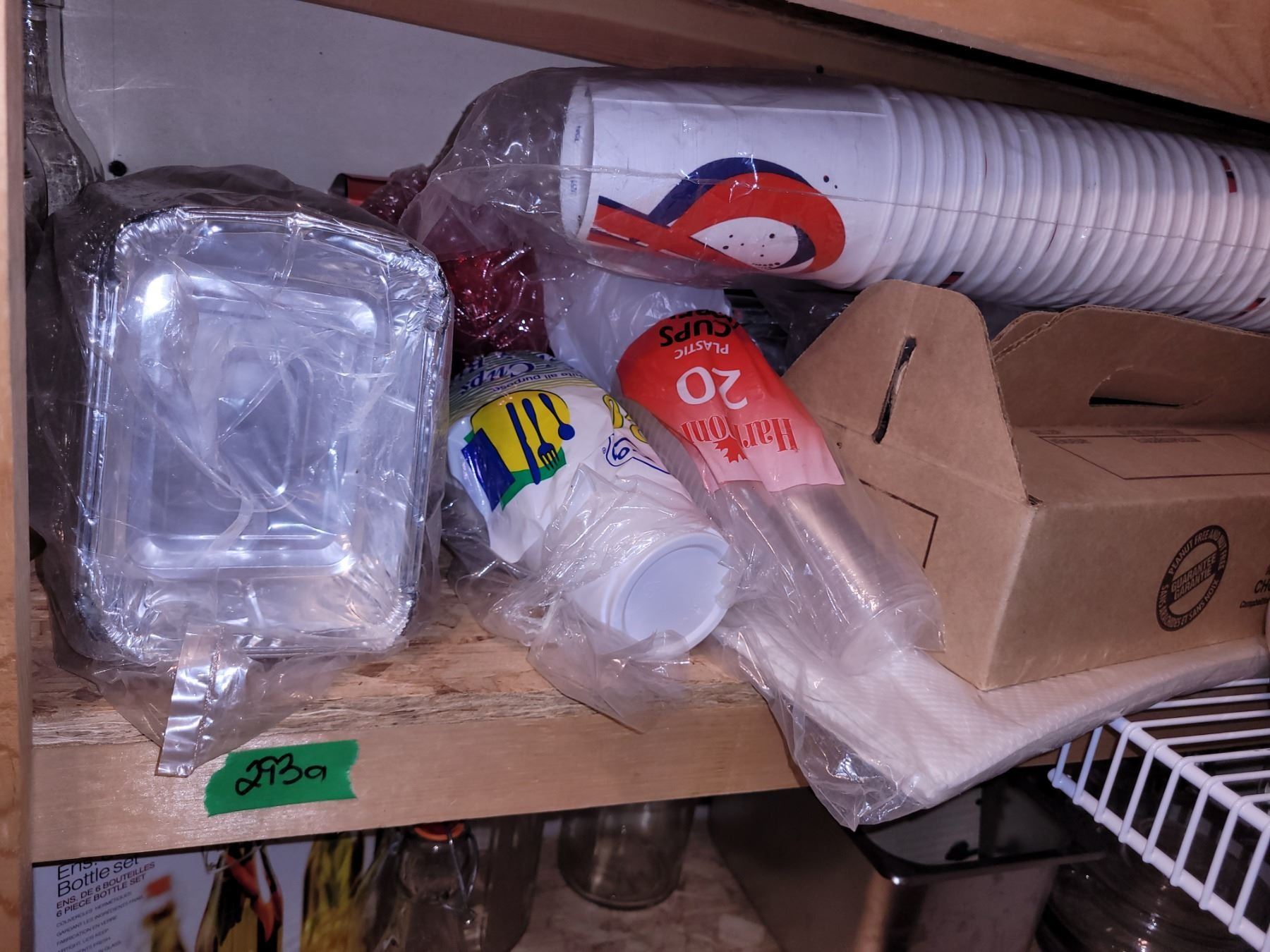 293a Large Lot of Disposables - Paper Plates, Napkins, Cups, Foil Containers, Cutlery +