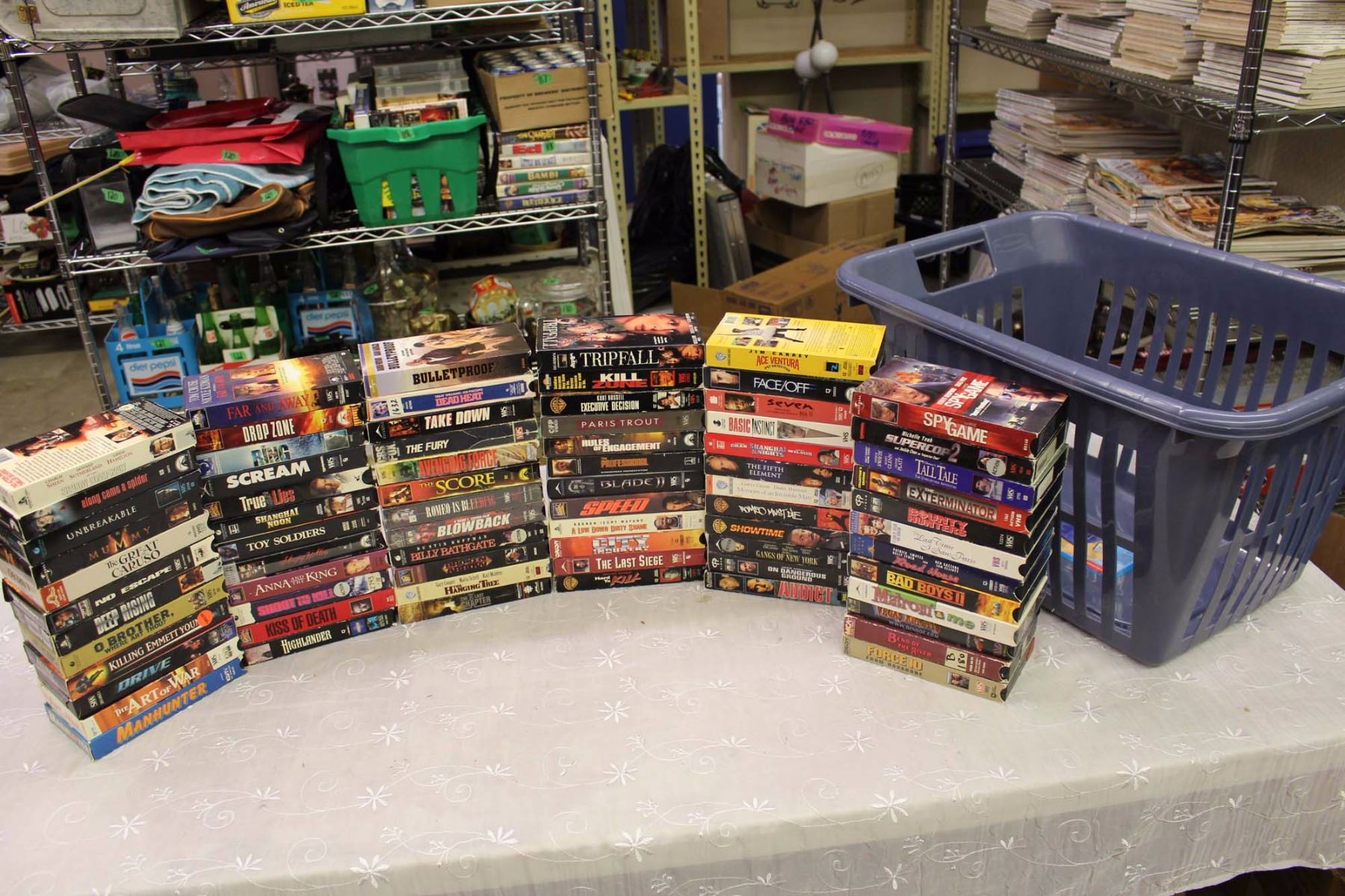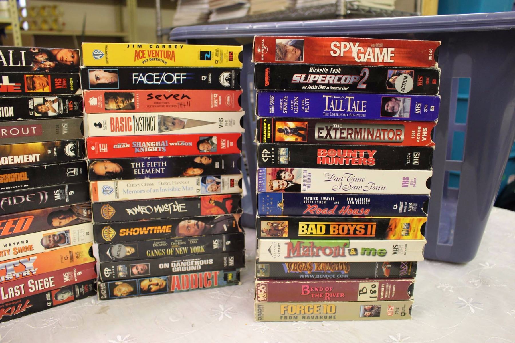 Lot of VHS Movies (Toy Soldiers, The Fury, Highlander, Etc;)w/Rubbermaid Hamper