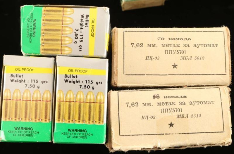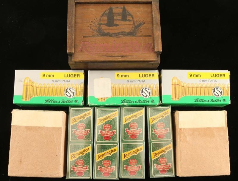 150 Rds S&V 9mm Luger, 2 boxes 7.62x25mm and a box of Remington matchboxes.