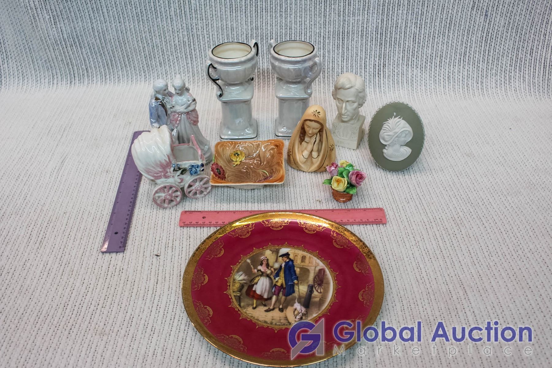 Lot of Various Home Decor Items ( Genuine Staffordshire Hand Painted Square Bowl)