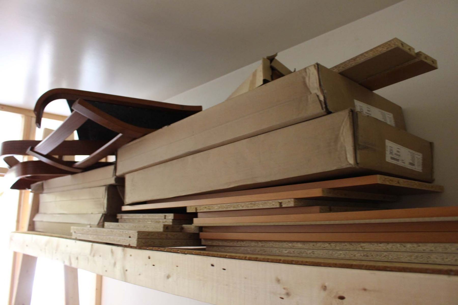 Lot of Various Pieces of Wood and a Chair