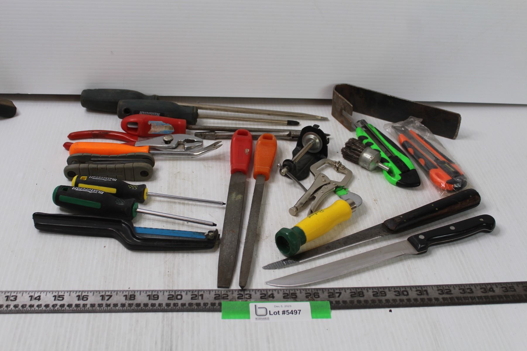 Lot of Various Tools: X-Acto Knifes, Files, Screwdrivers, Allen Keys, Clamps, Misc.