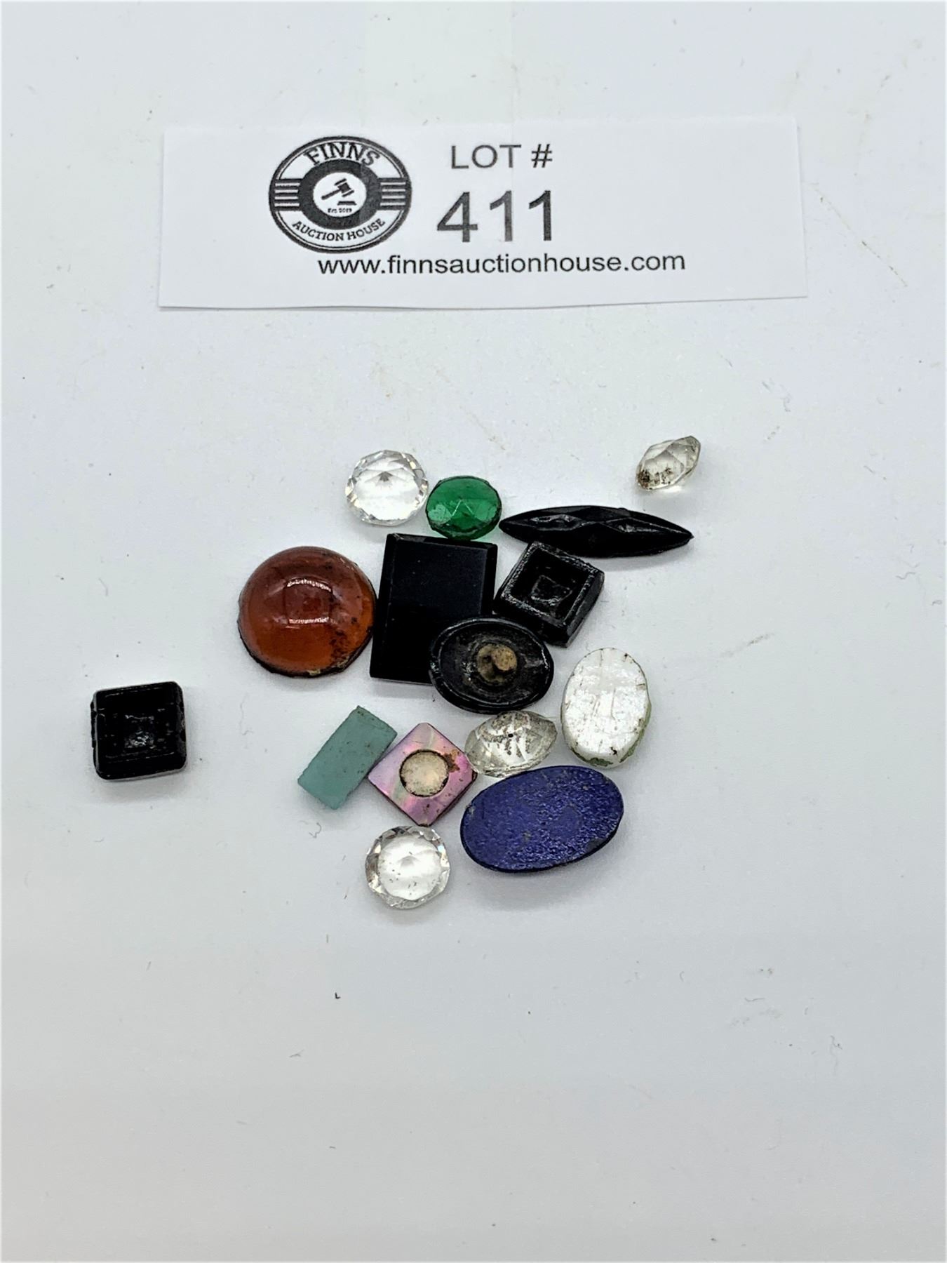 Lot of Victorian and Later Black Glass Pieces Crystals and Cameos etc