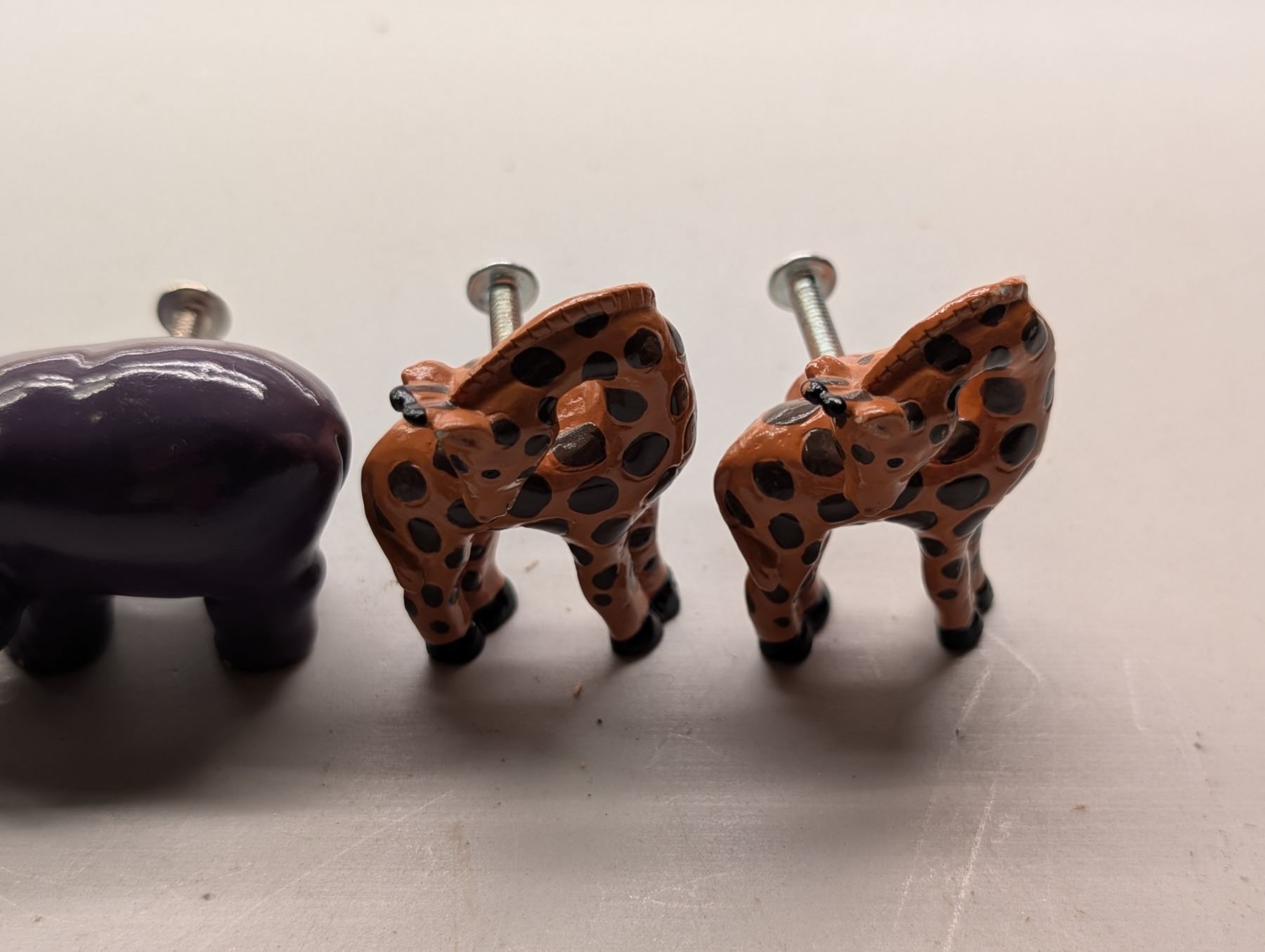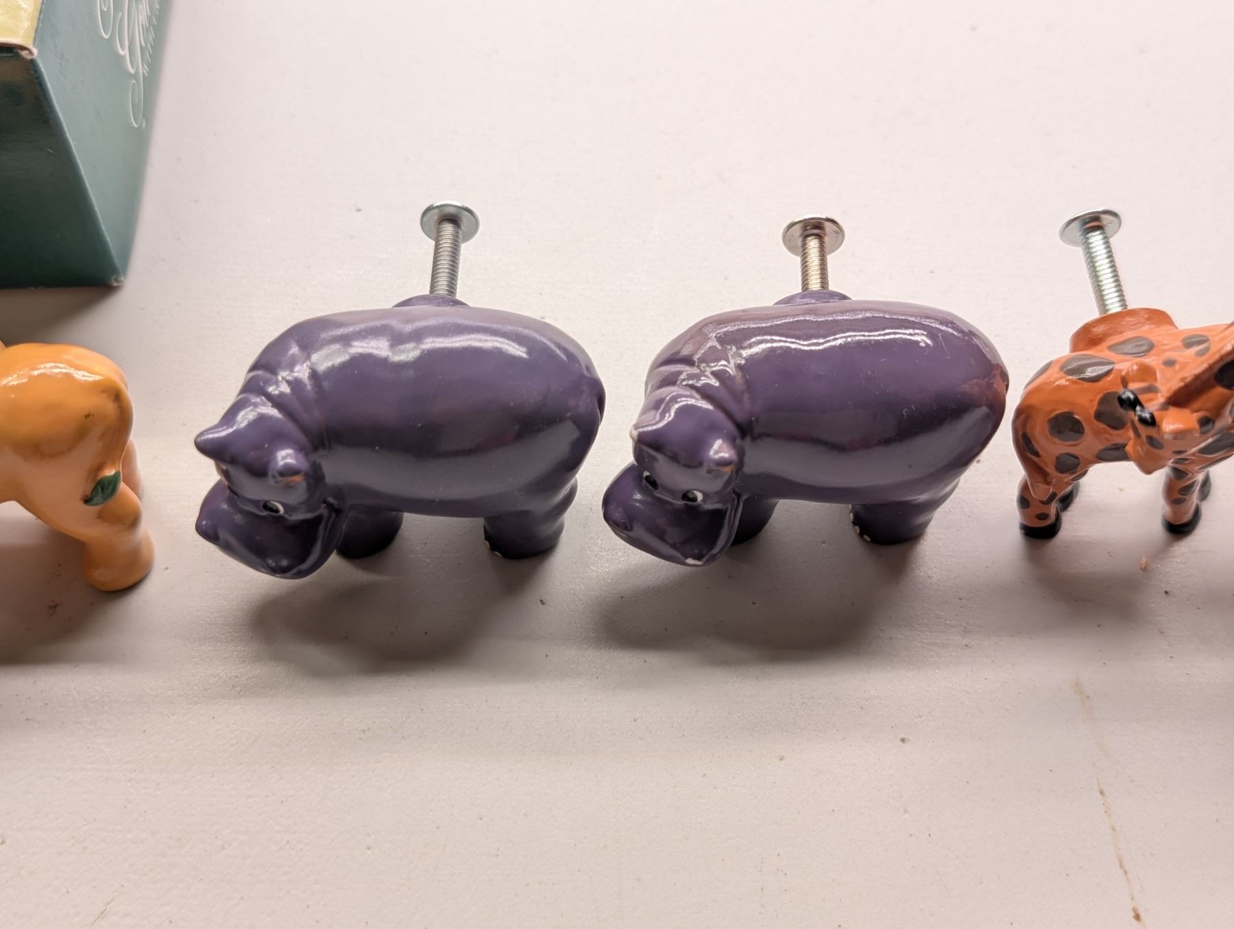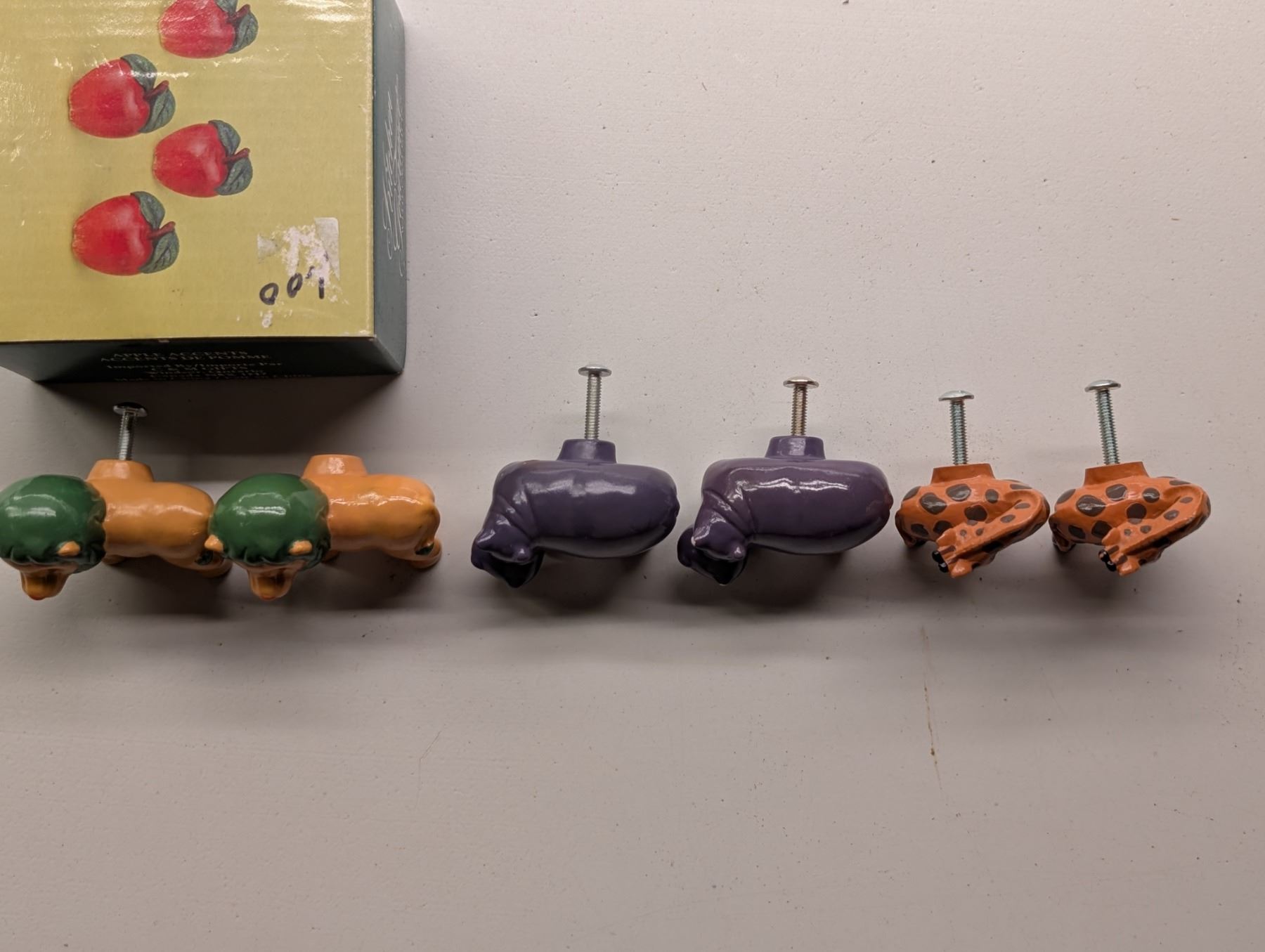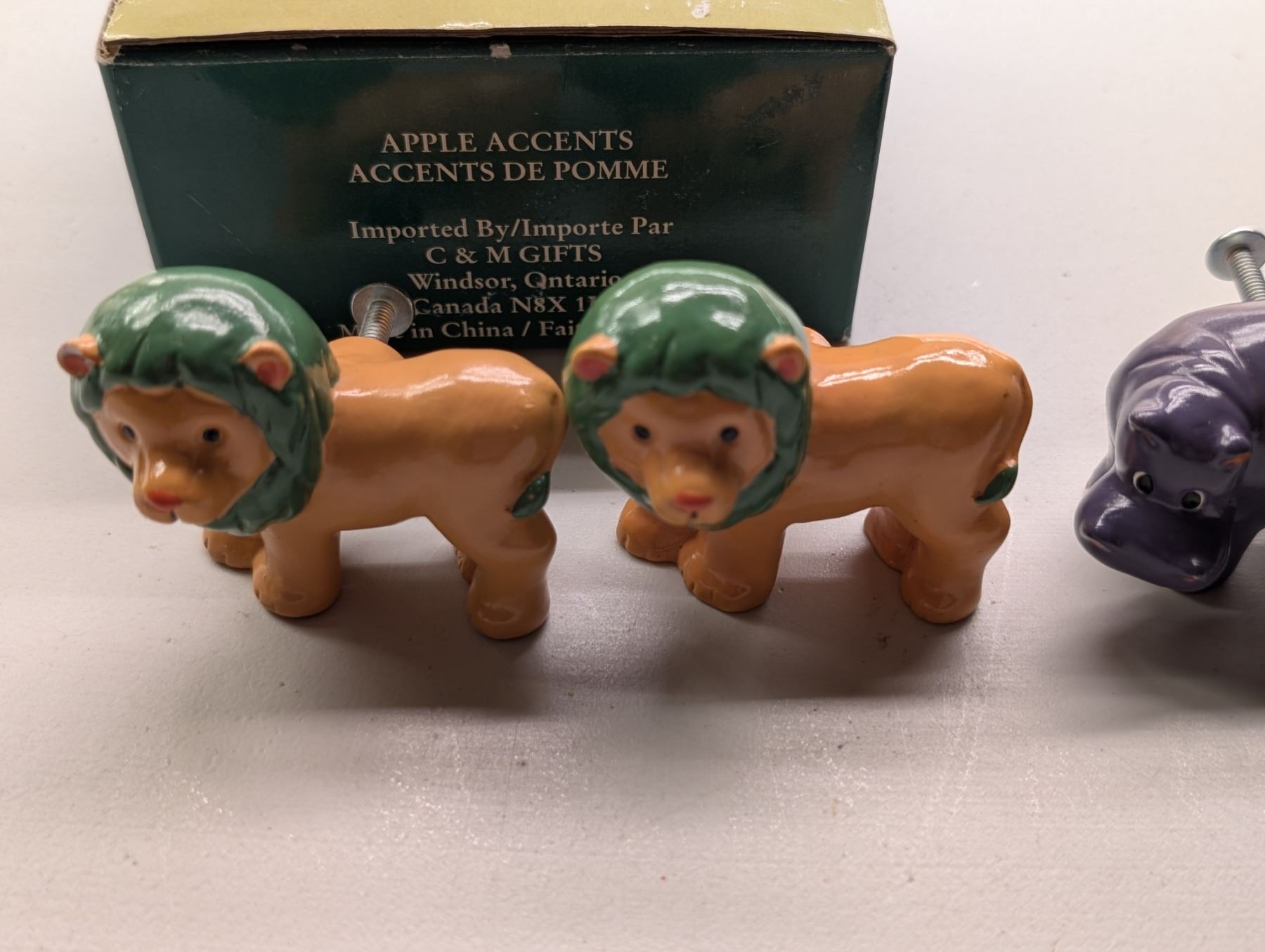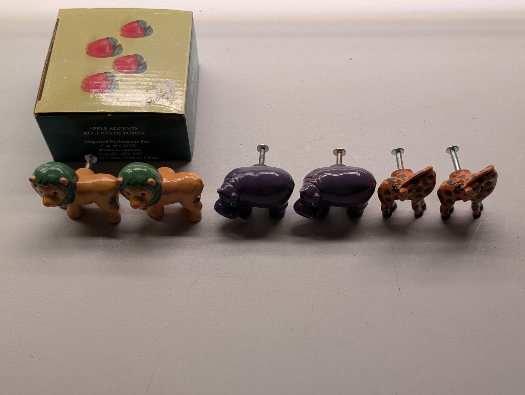 Lot of Vintage Animal Designed Accents (Drawer Knobs) and Original Box w/ (4) Apple Accents