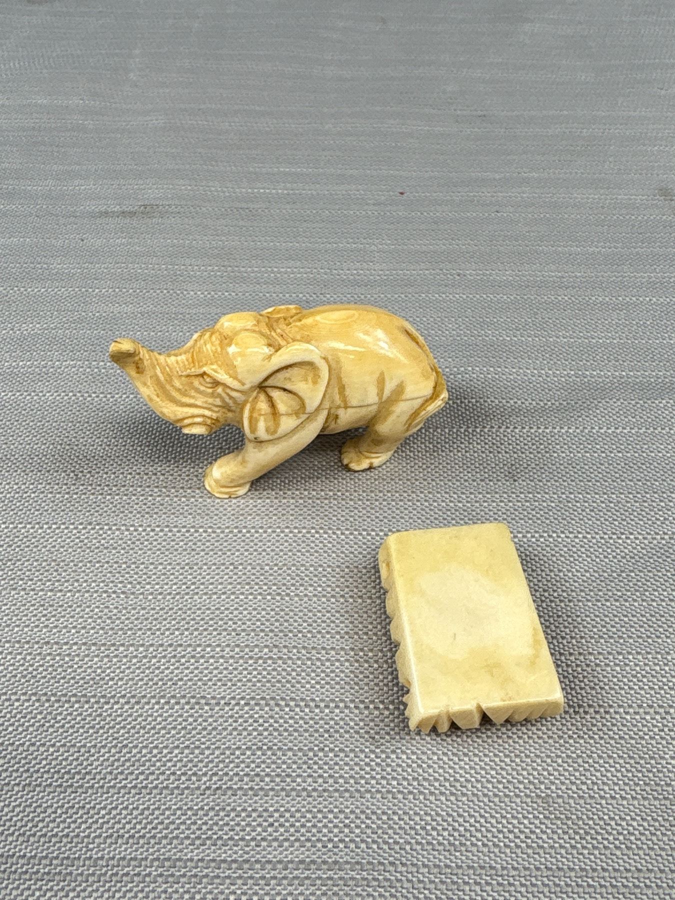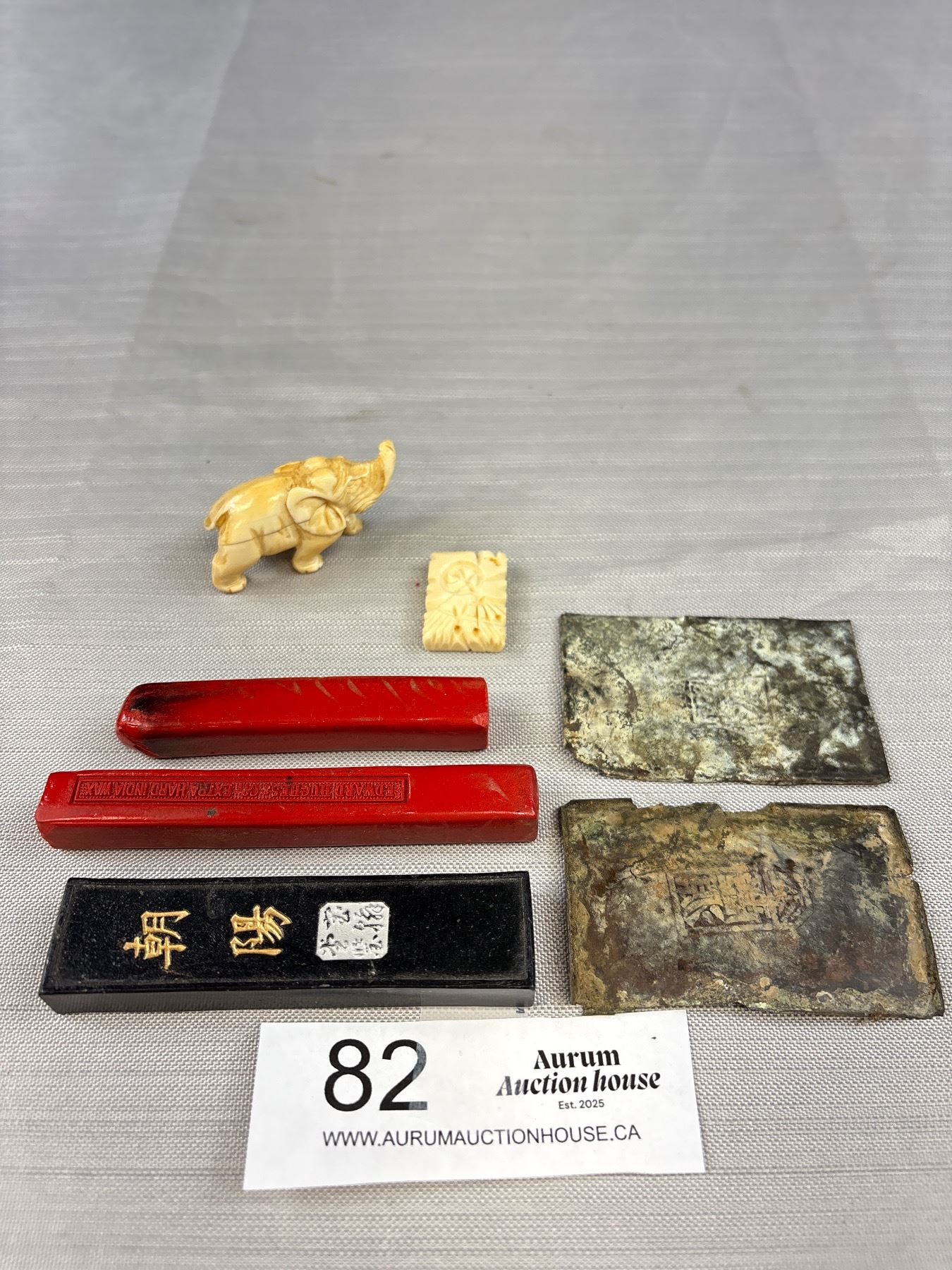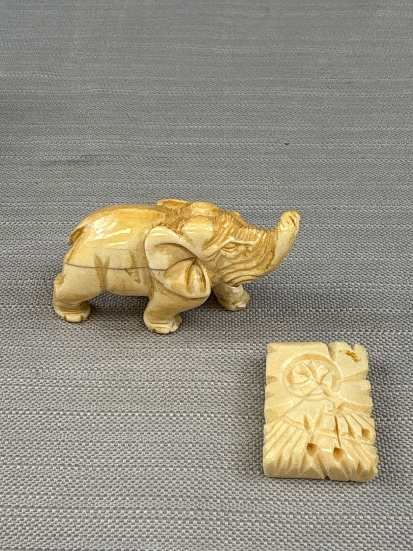 Lot of Vintage Asian Chinese Ivory ? Elephant, Stamps, Etc