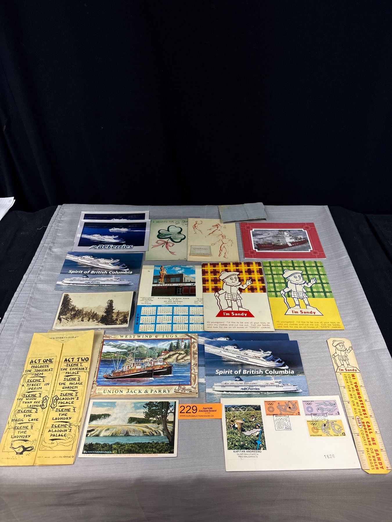 Lot of Vintage BC Advertisements BC Ferries, Old Menus, etc.