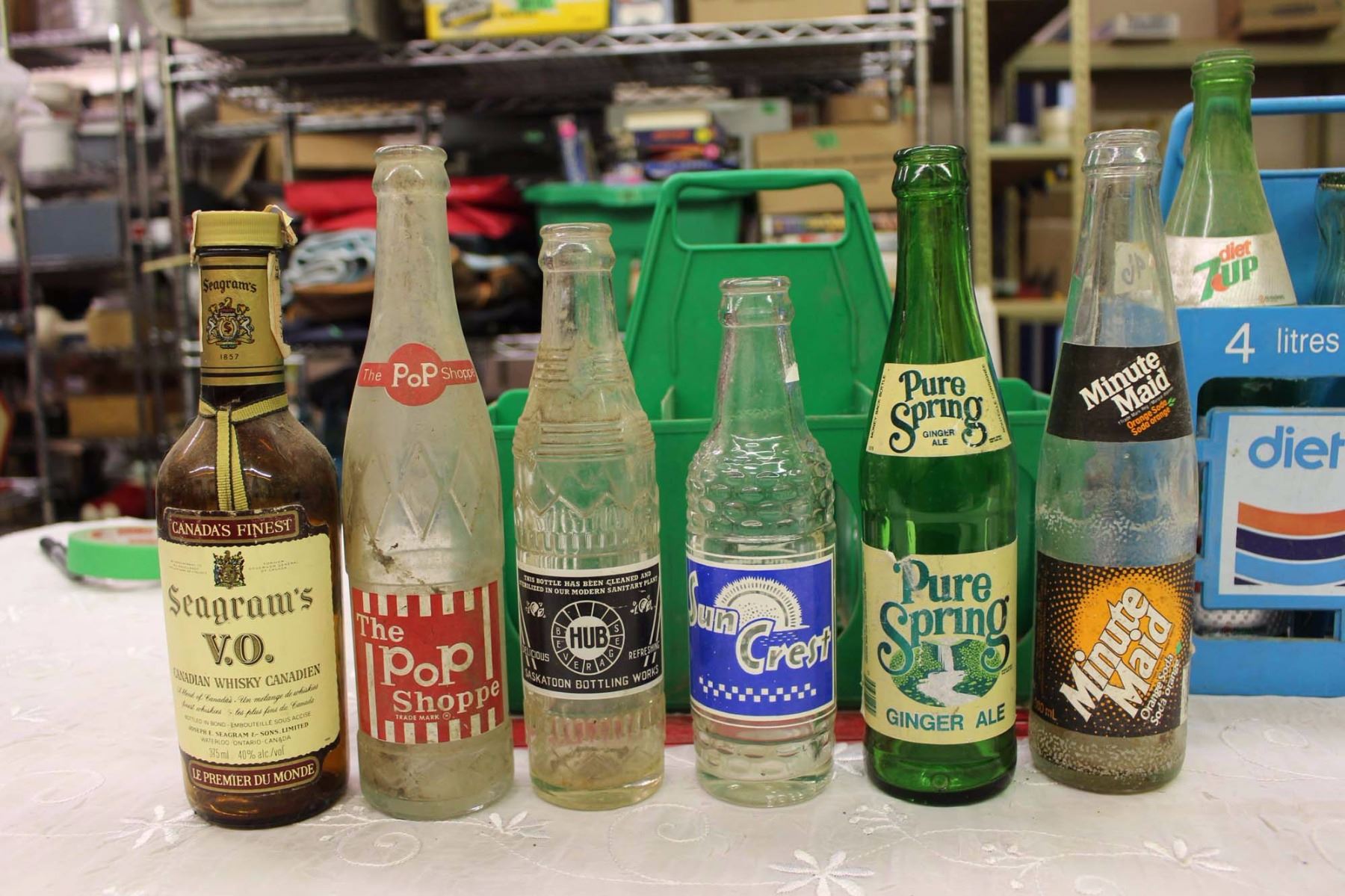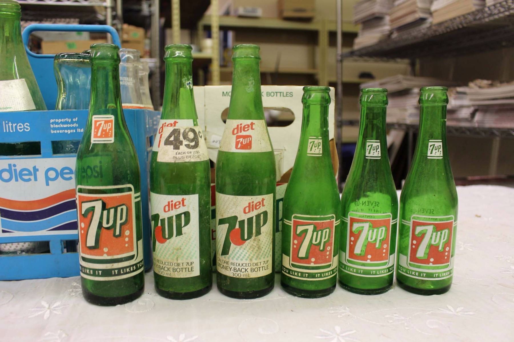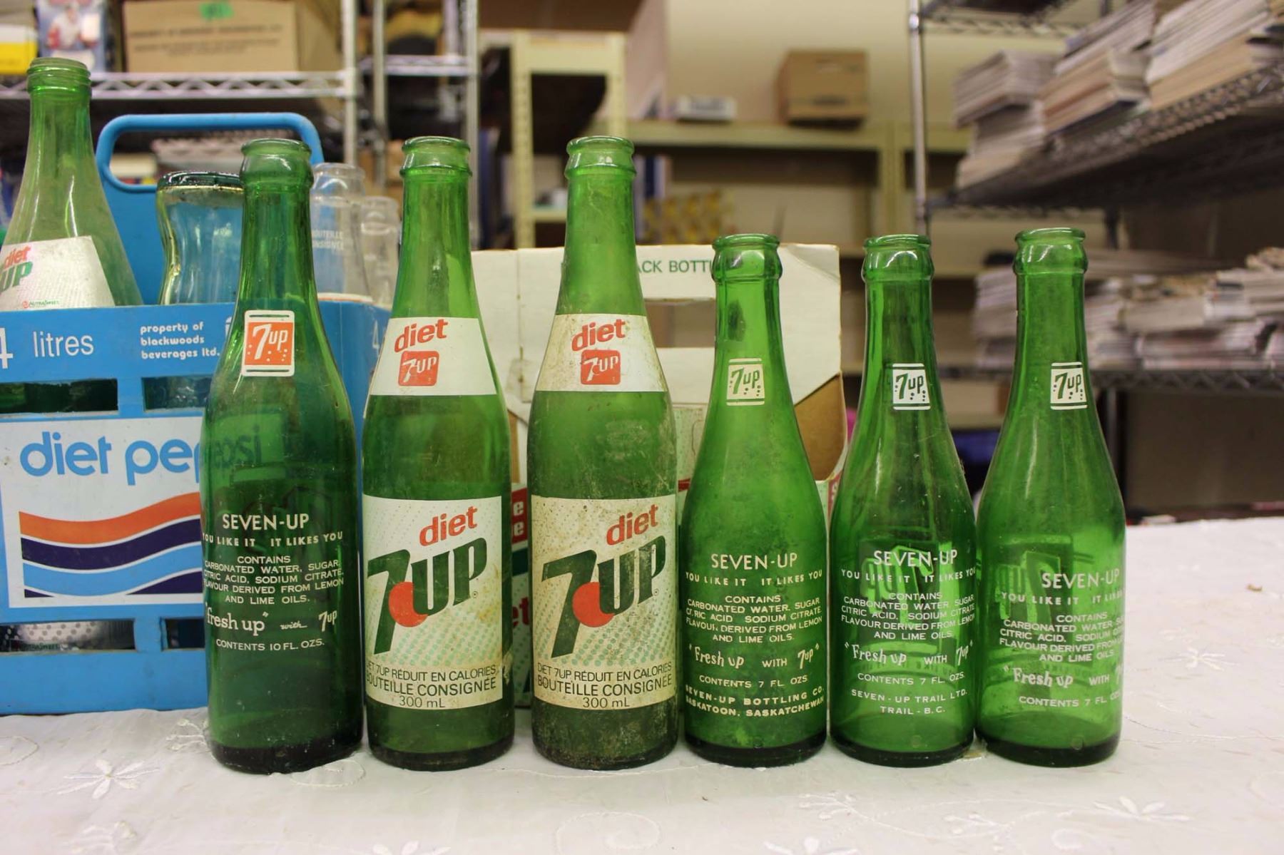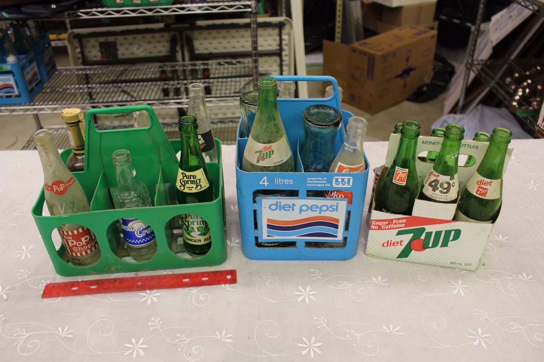 Lot of Vintage Bottles (7-Up, Sun Crest, The Pop Shoppe,Etc;)w/Bottle Crates