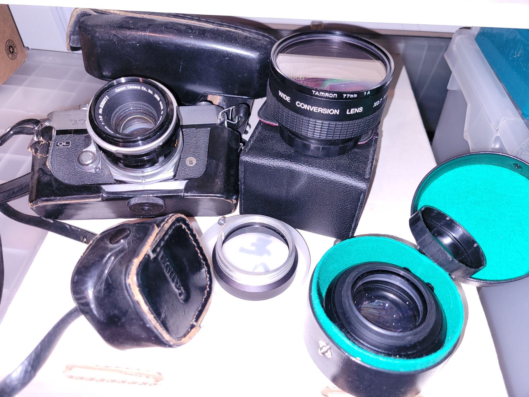 Lot of Vintage Camera Lens, Gear and Camera Canon TL