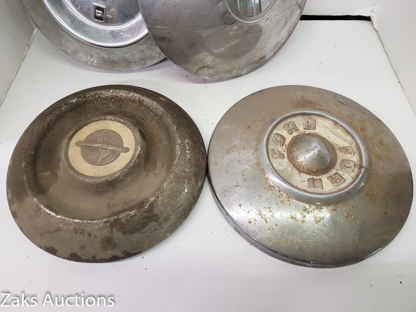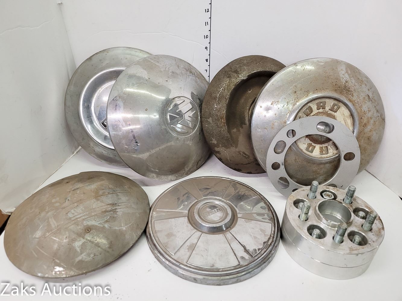 Lot of Vintage Chrome Hub Caps and One Unknown Rotor