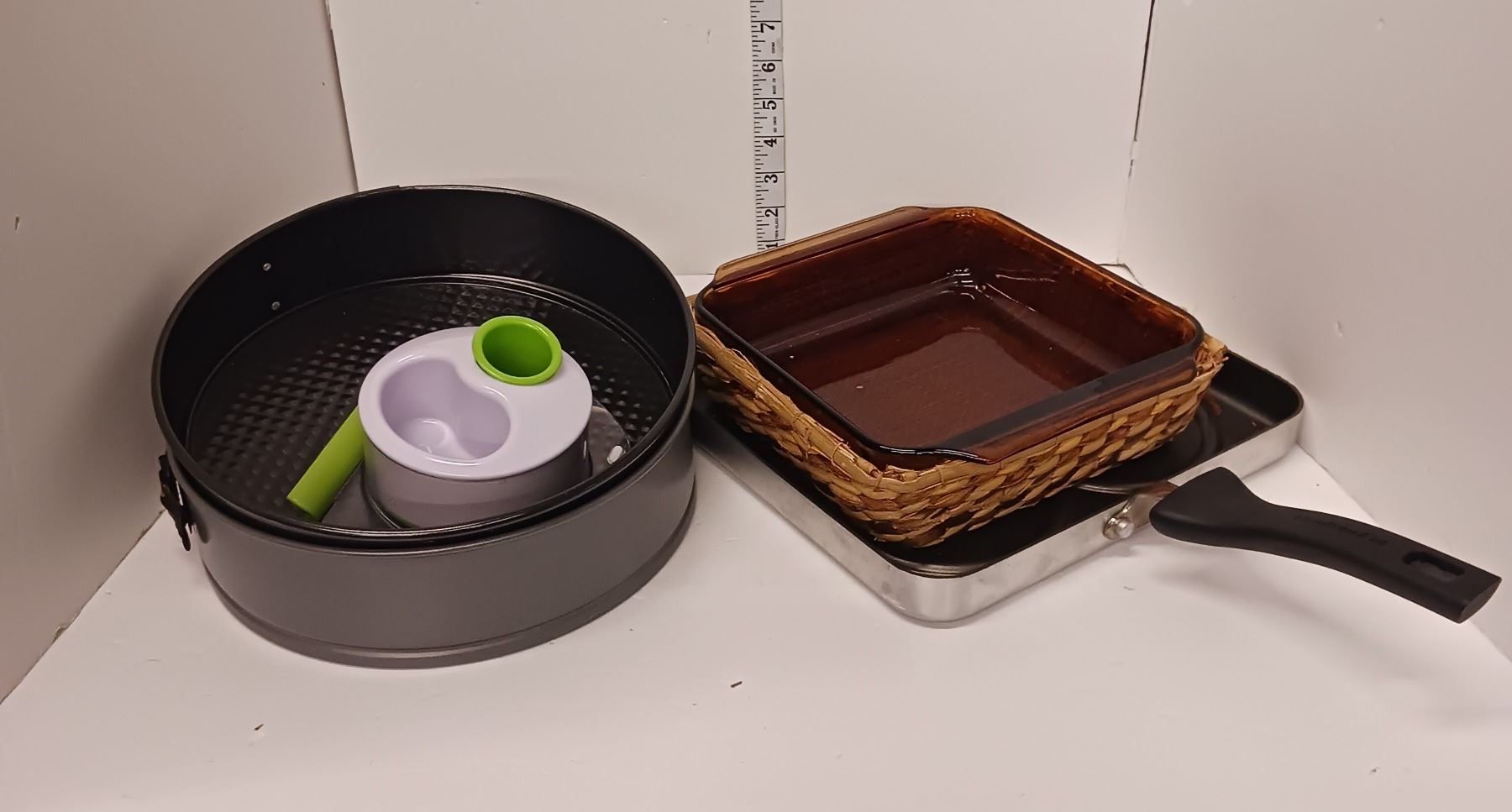 Lot of Vintage Cookware - Flan Pans, Visionware Square Dish Etc