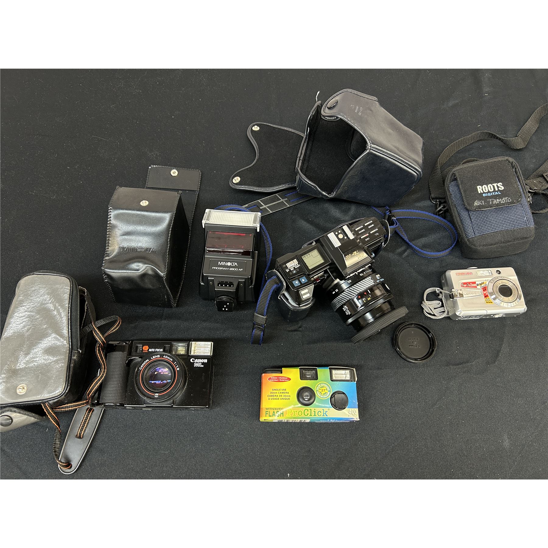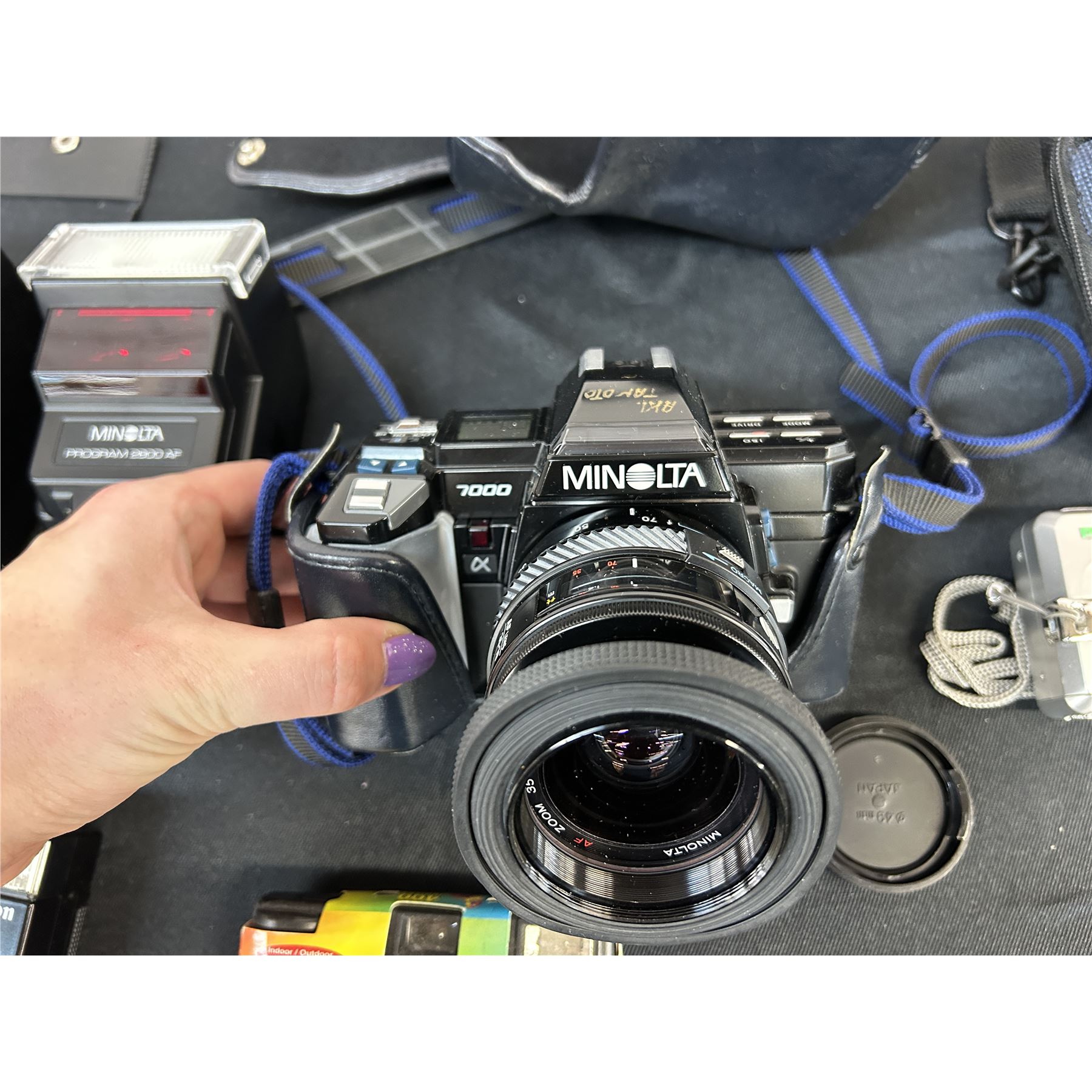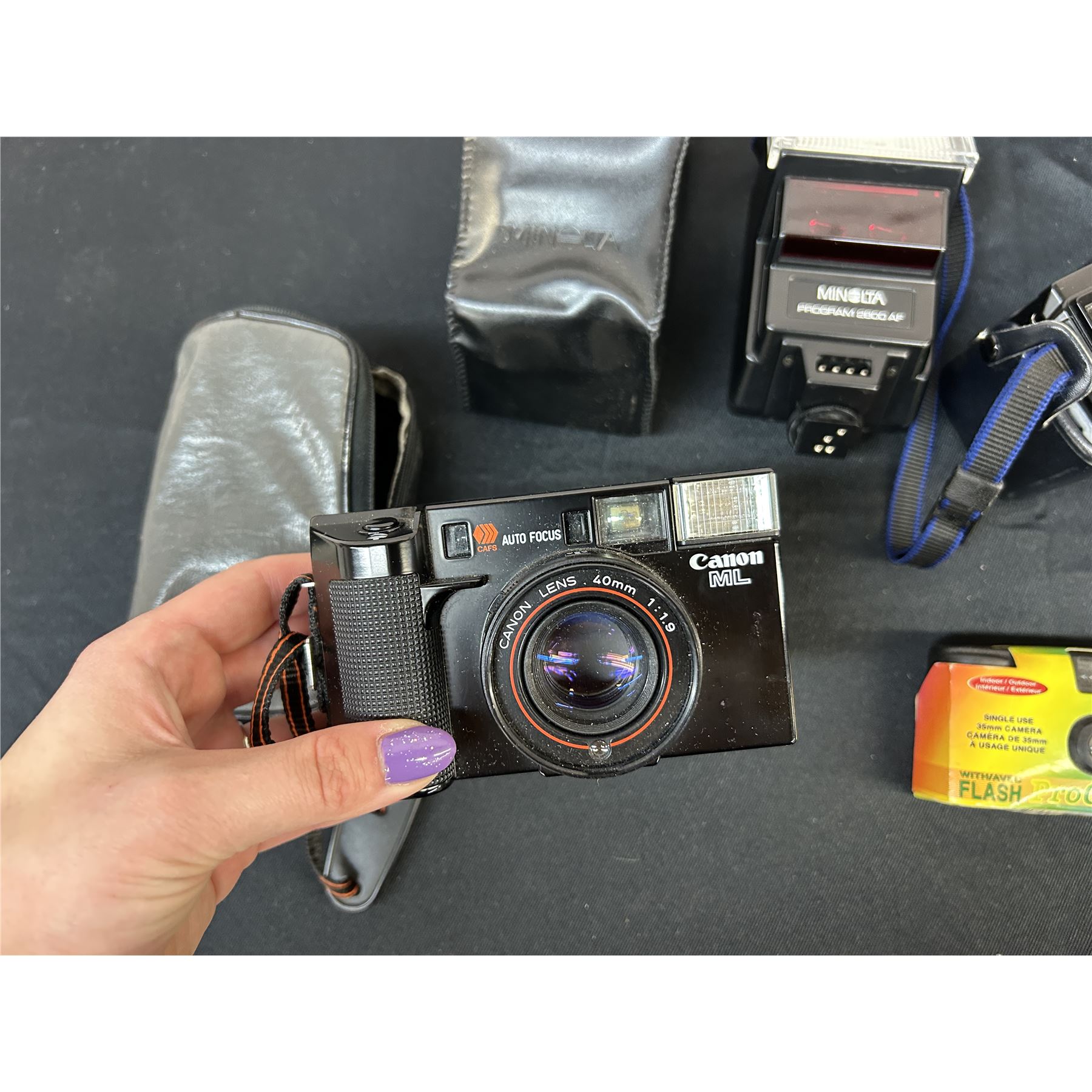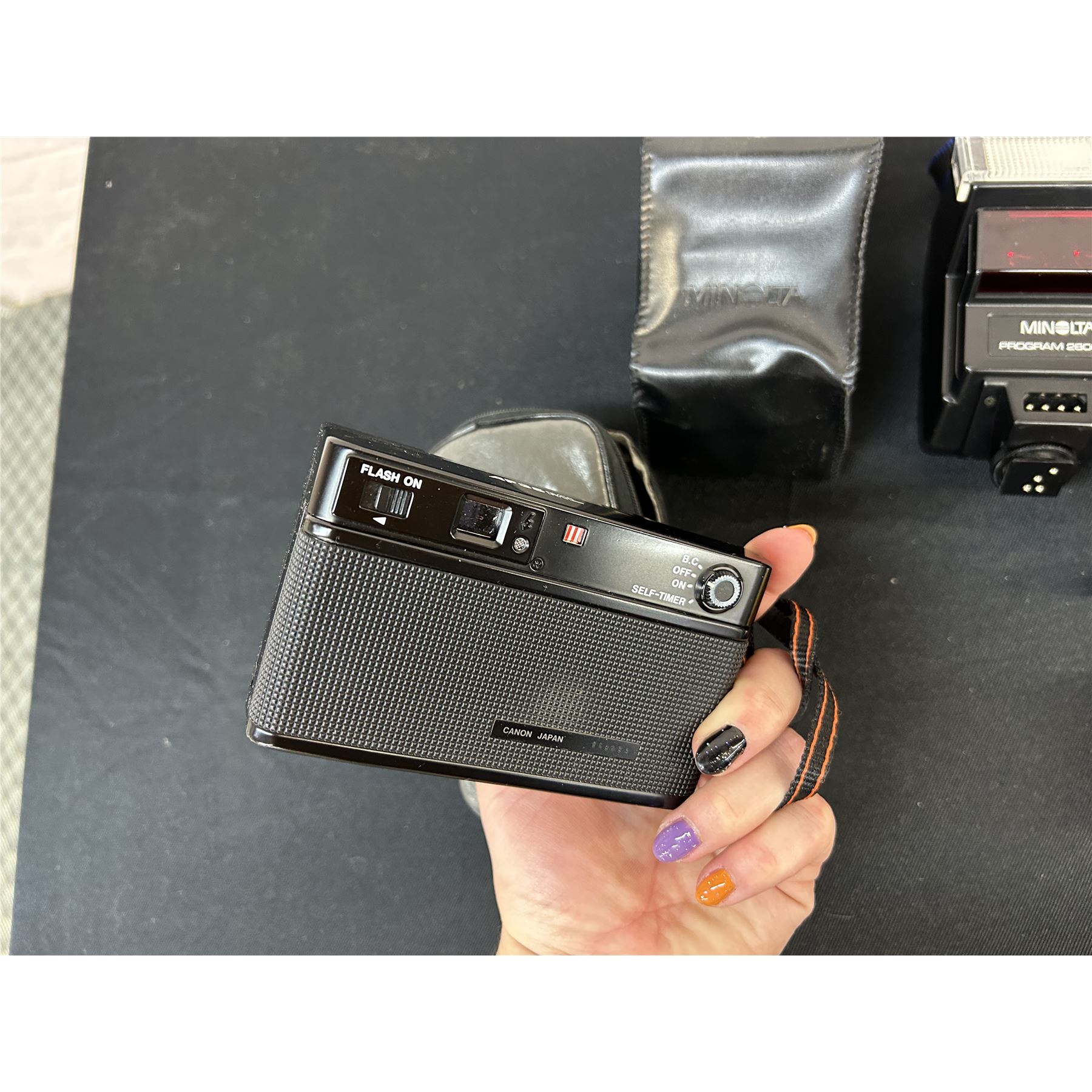 Lot of Vintage Film Camera Items Minolta, Canon, Pentax Digital Camera, cases, Flash