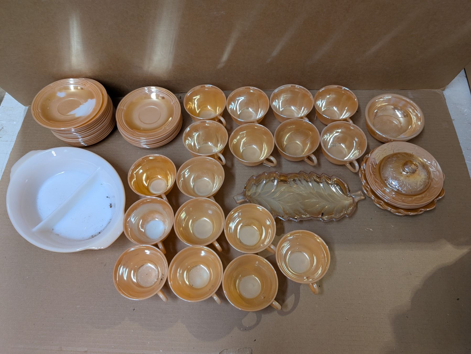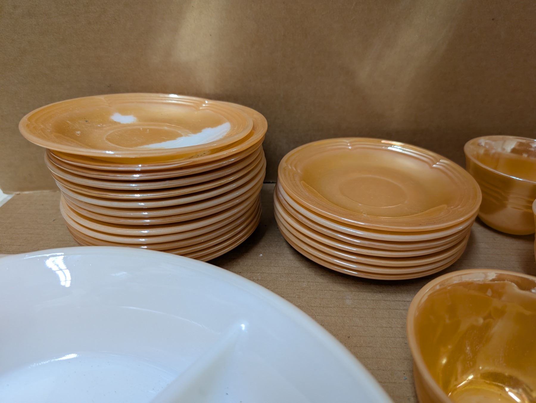 Lot of Vintage Fire King Dishware (Tea Cups, Saucers, Divided Dish, and etc.)