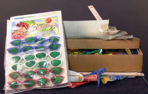 Lot of Vintage Give-A-Way Prizes; Rulers, Sun Glasses and Plastic Airplanes
