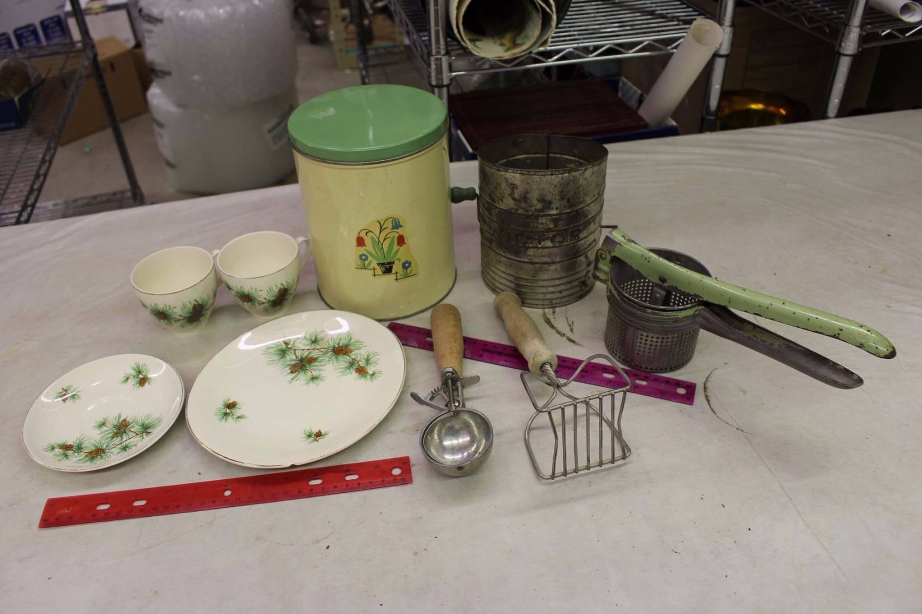 Lot of Vintage Green Coloured Kitchenware(Flour Sifter, Ice Cream Scoop, Etc;)