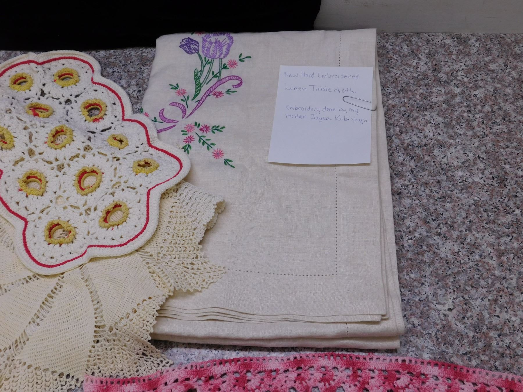 embroidery done by consignor's mother.