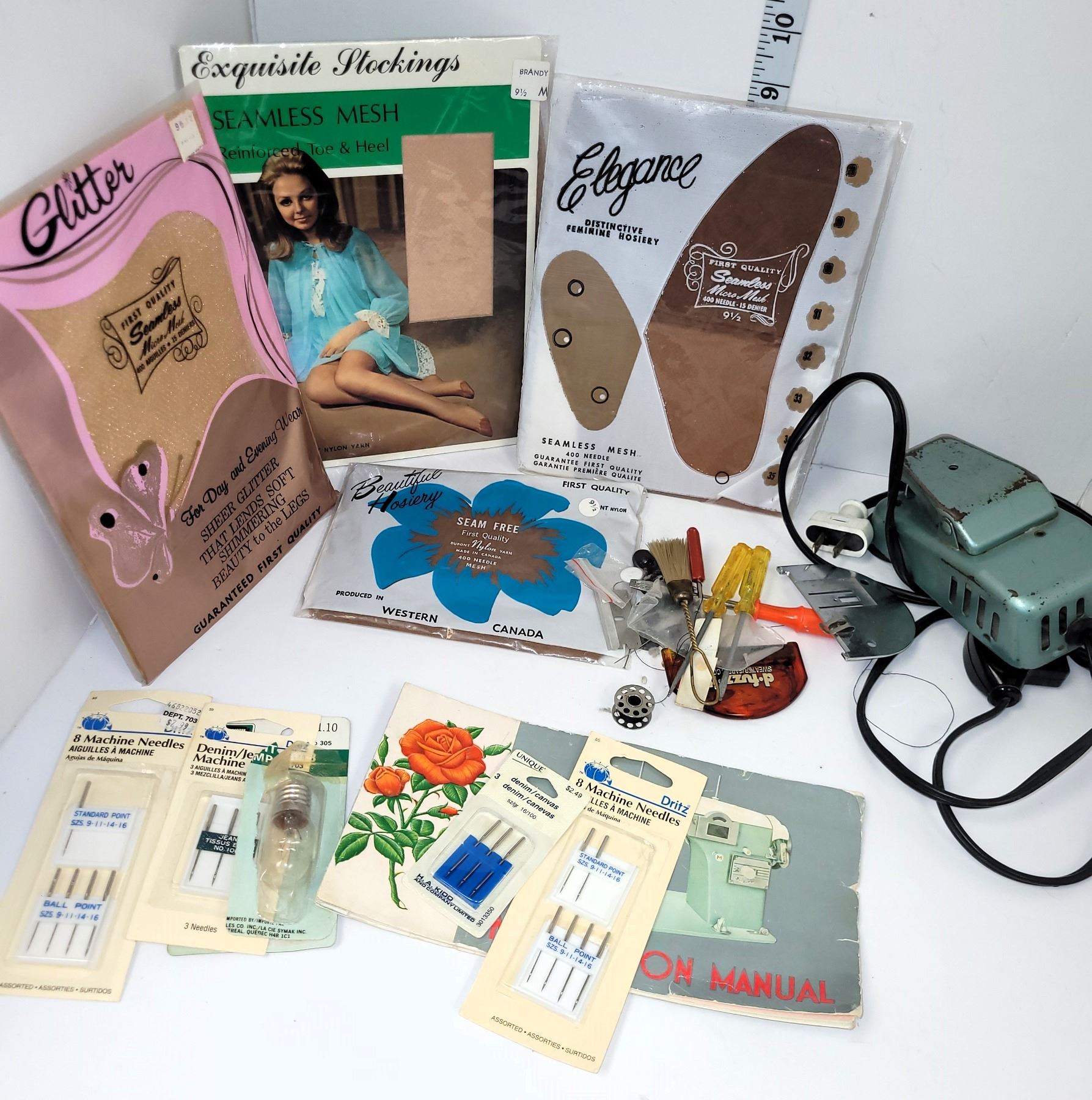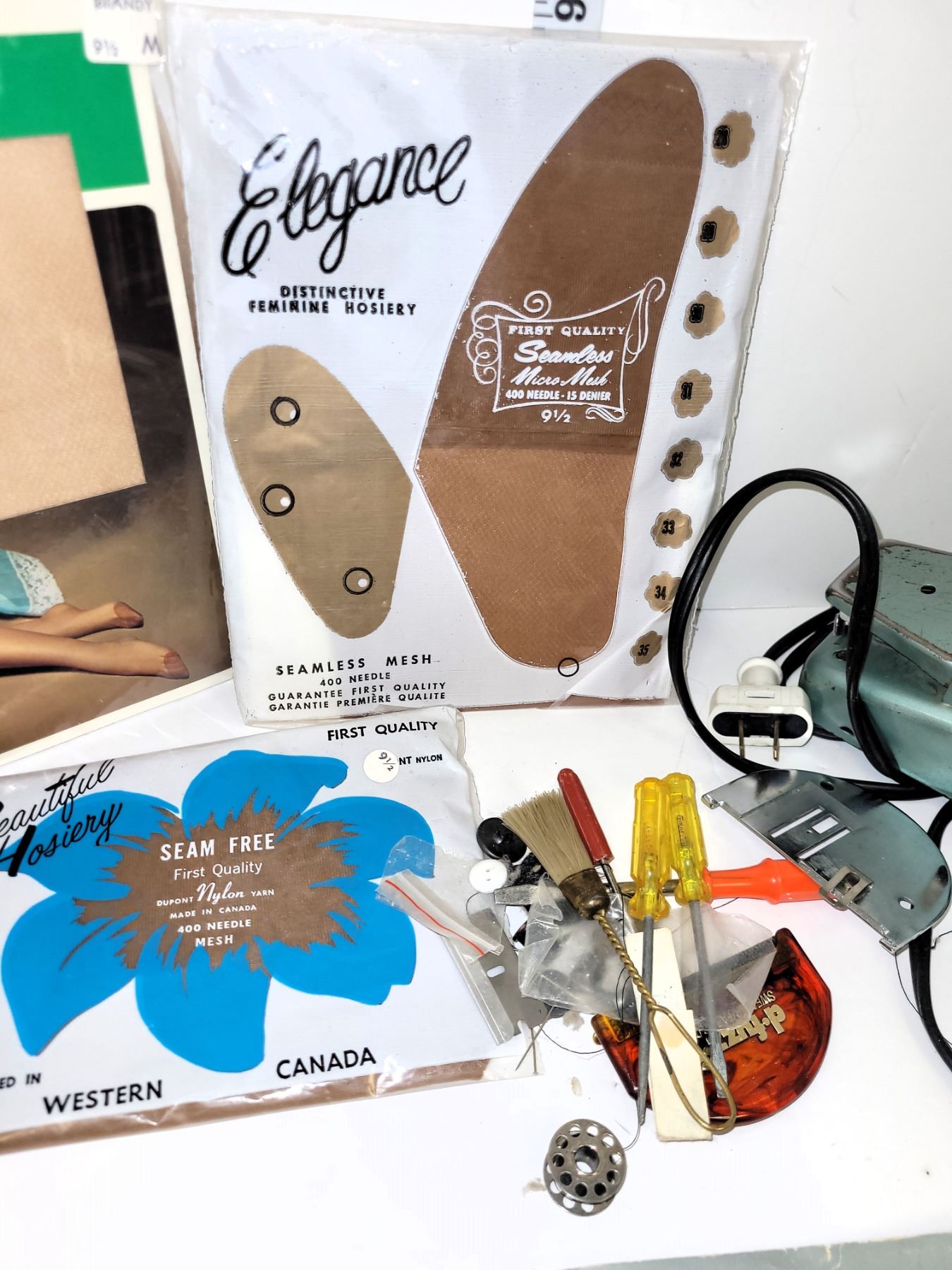 Lot of Vintage Hosiery & Sewing Notions and Sewing Machine Parts