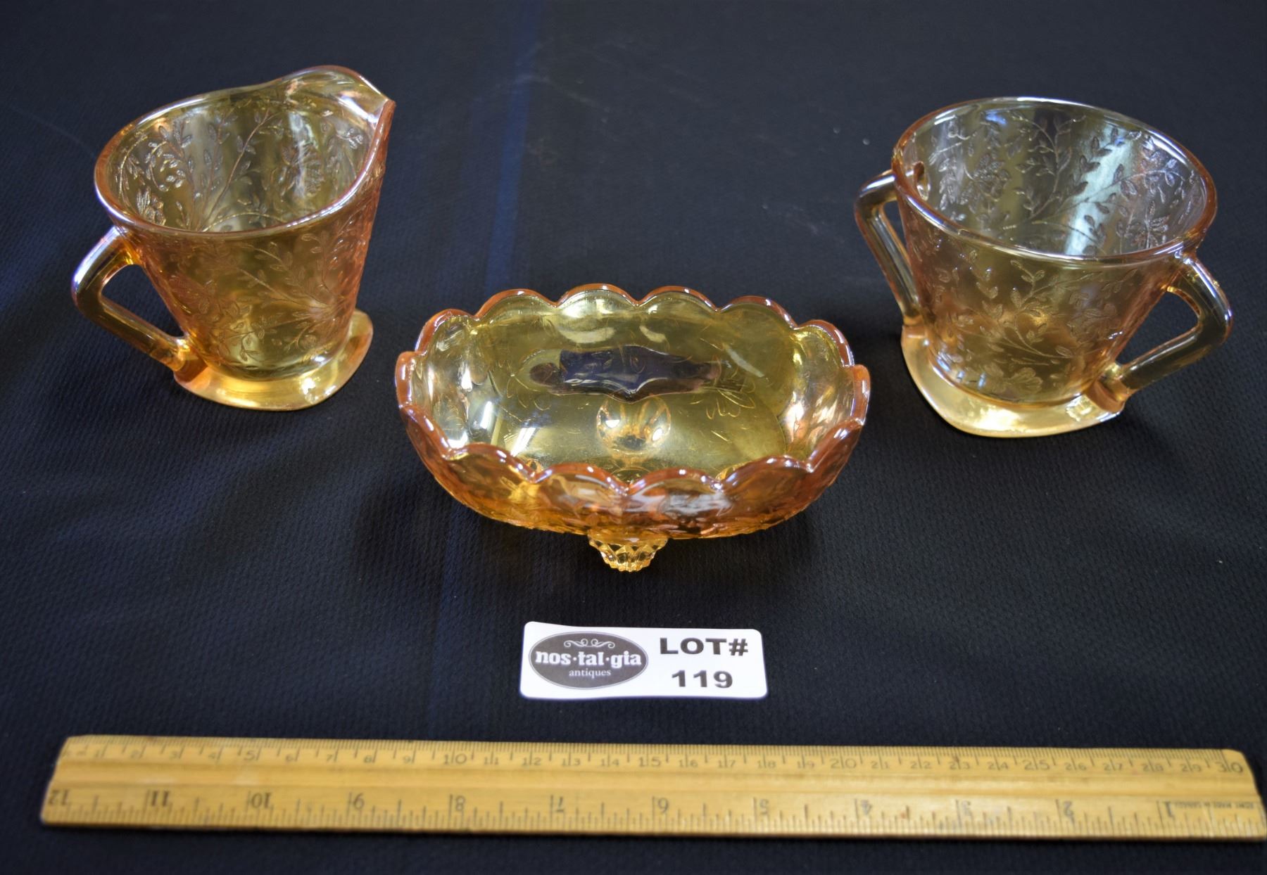 Depression Glass Cream and Sugar Set and Candy Dish
