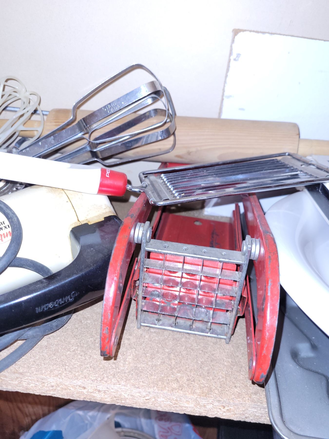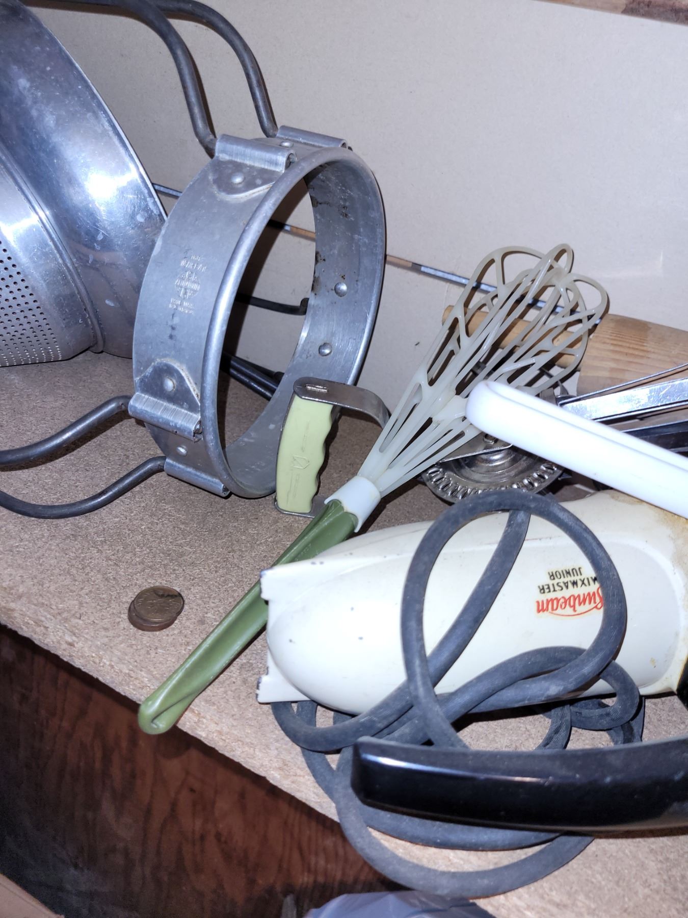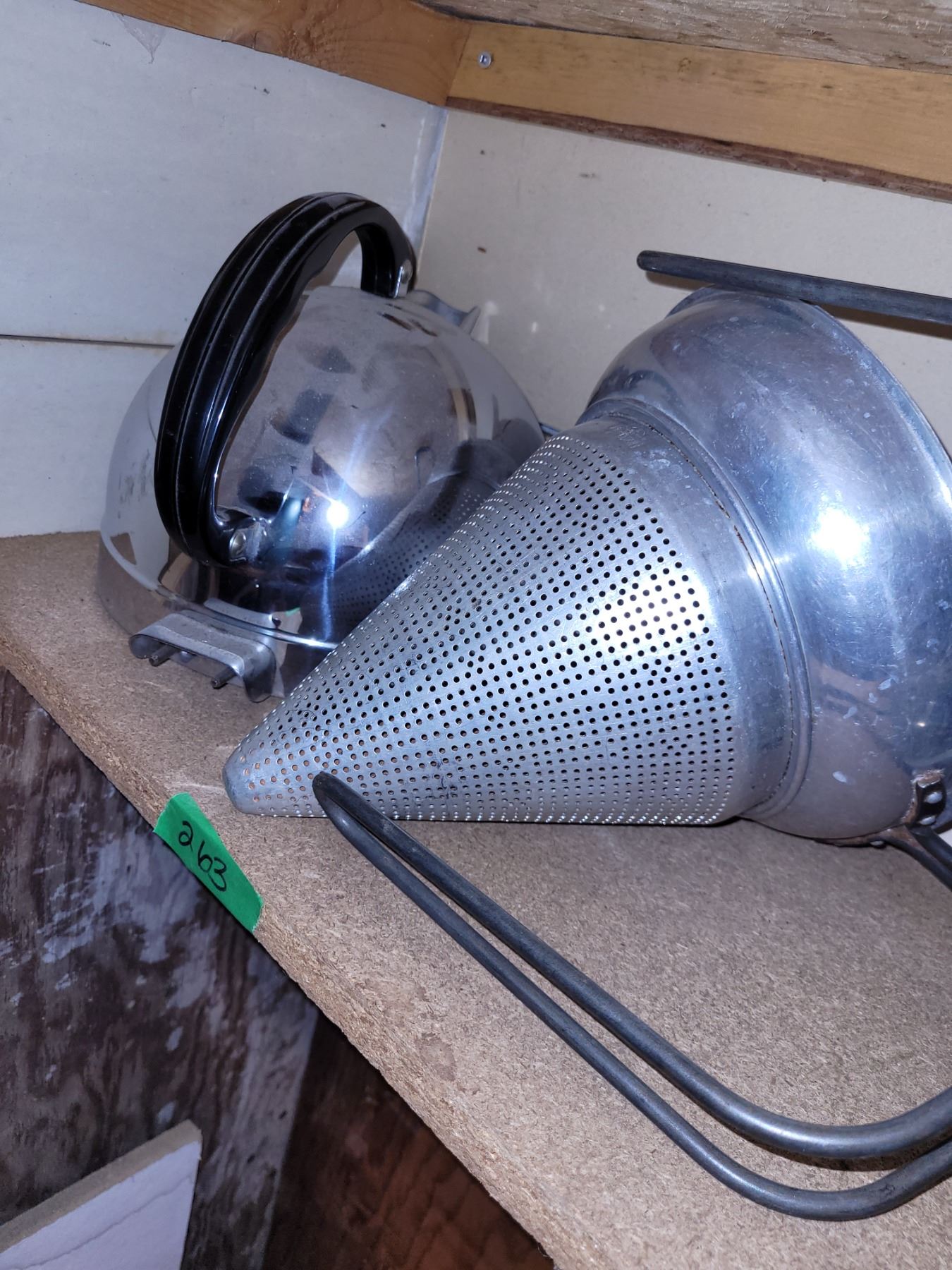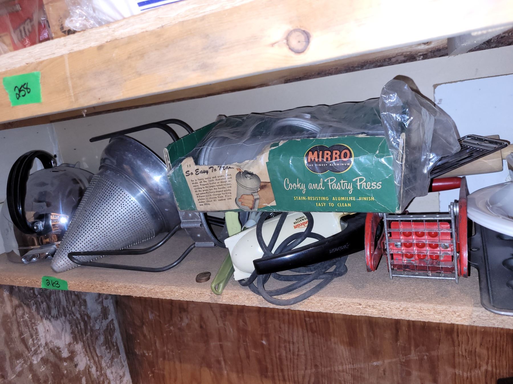 Lot of Vintage Kitchen Items - Cone Strainer, Pastry Press, Kettle +++