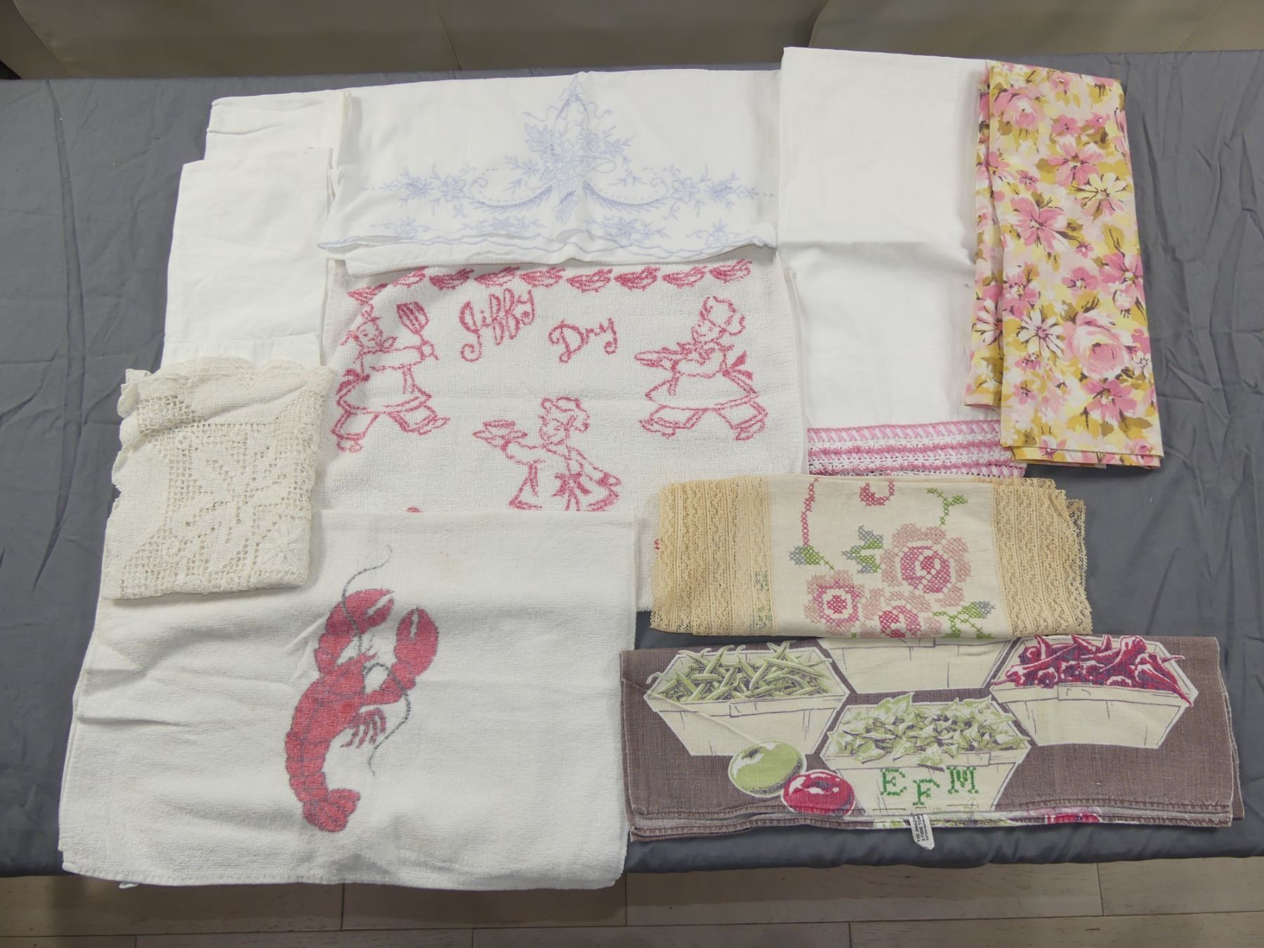 Lot of Vintage Linens with Pillowcases, Runner, Towels