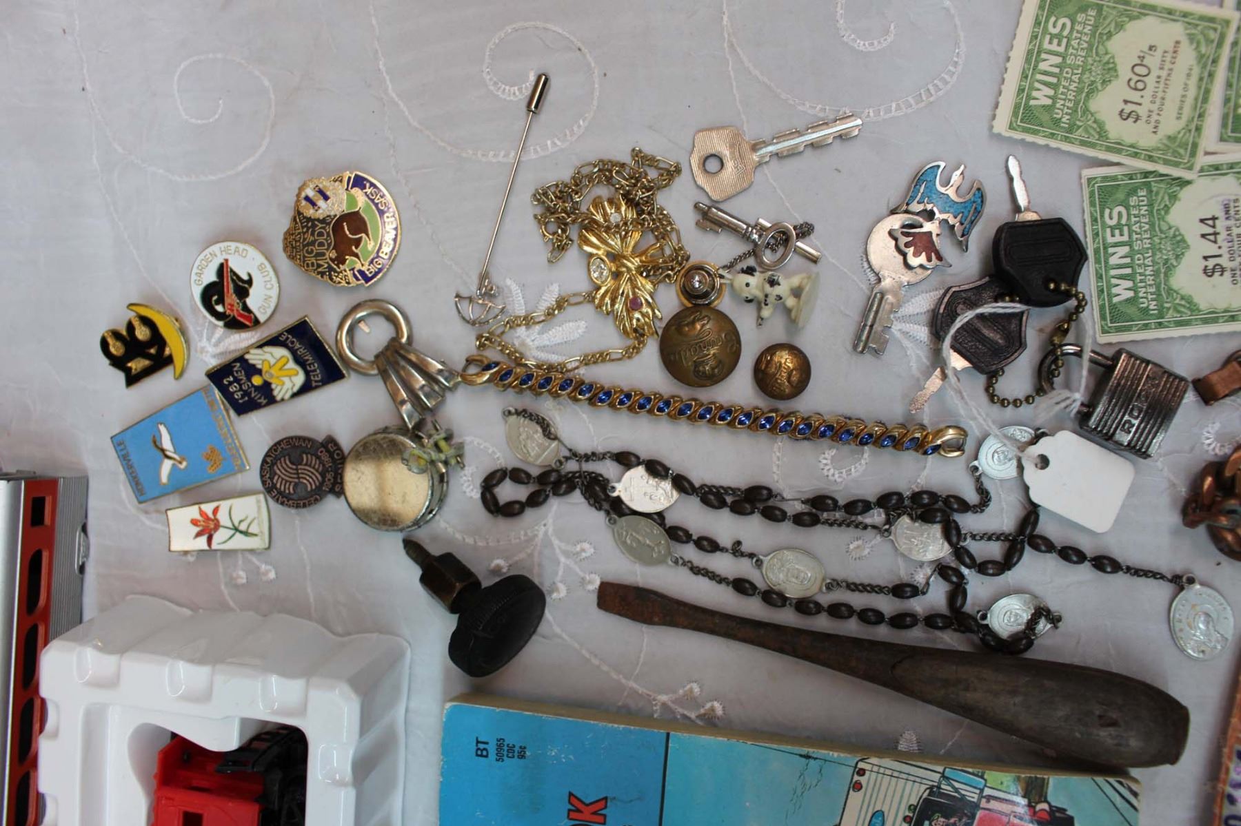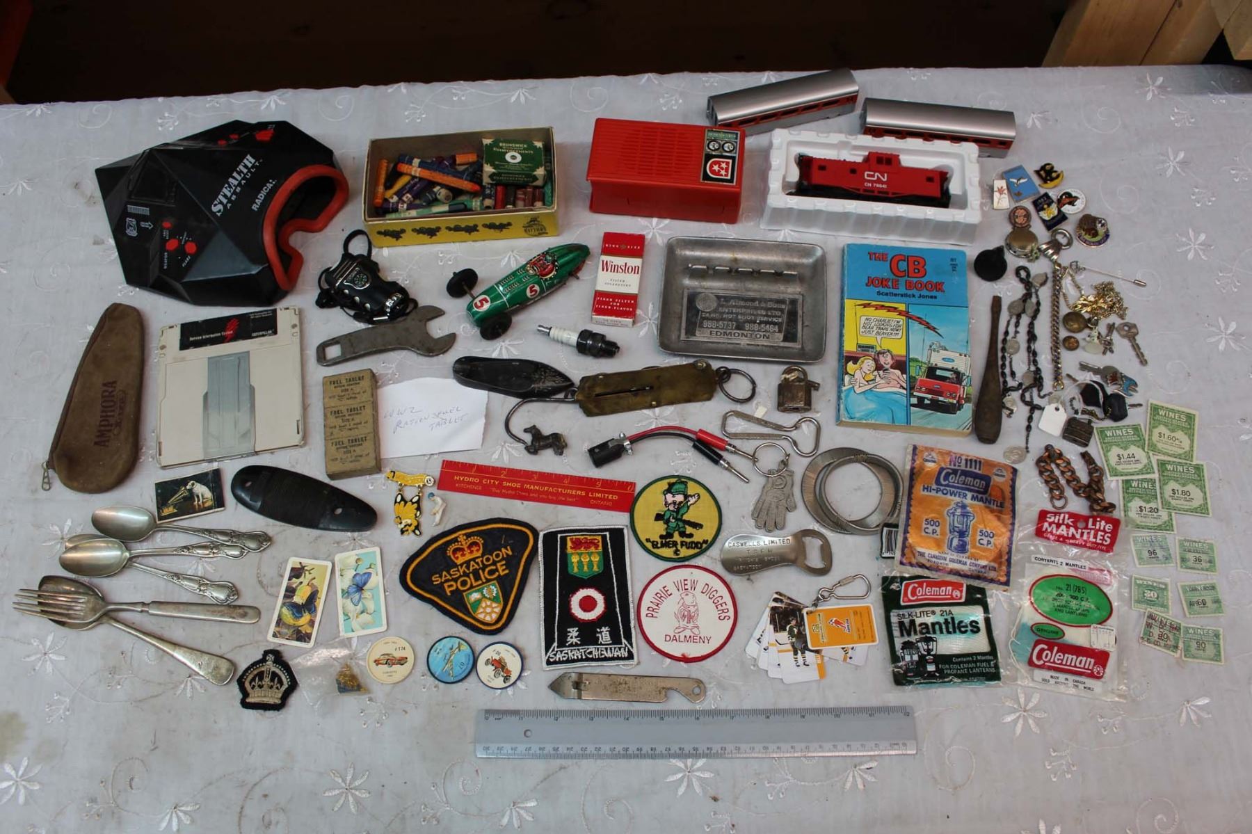 Lot of Vintage Misc (CN Train, Badges, Pins, WW2 Ration Fuel Tablet, Etc)