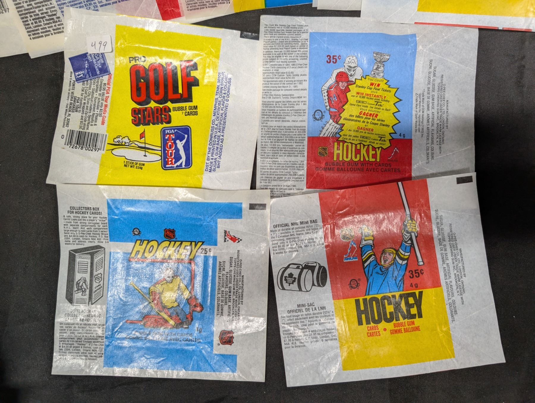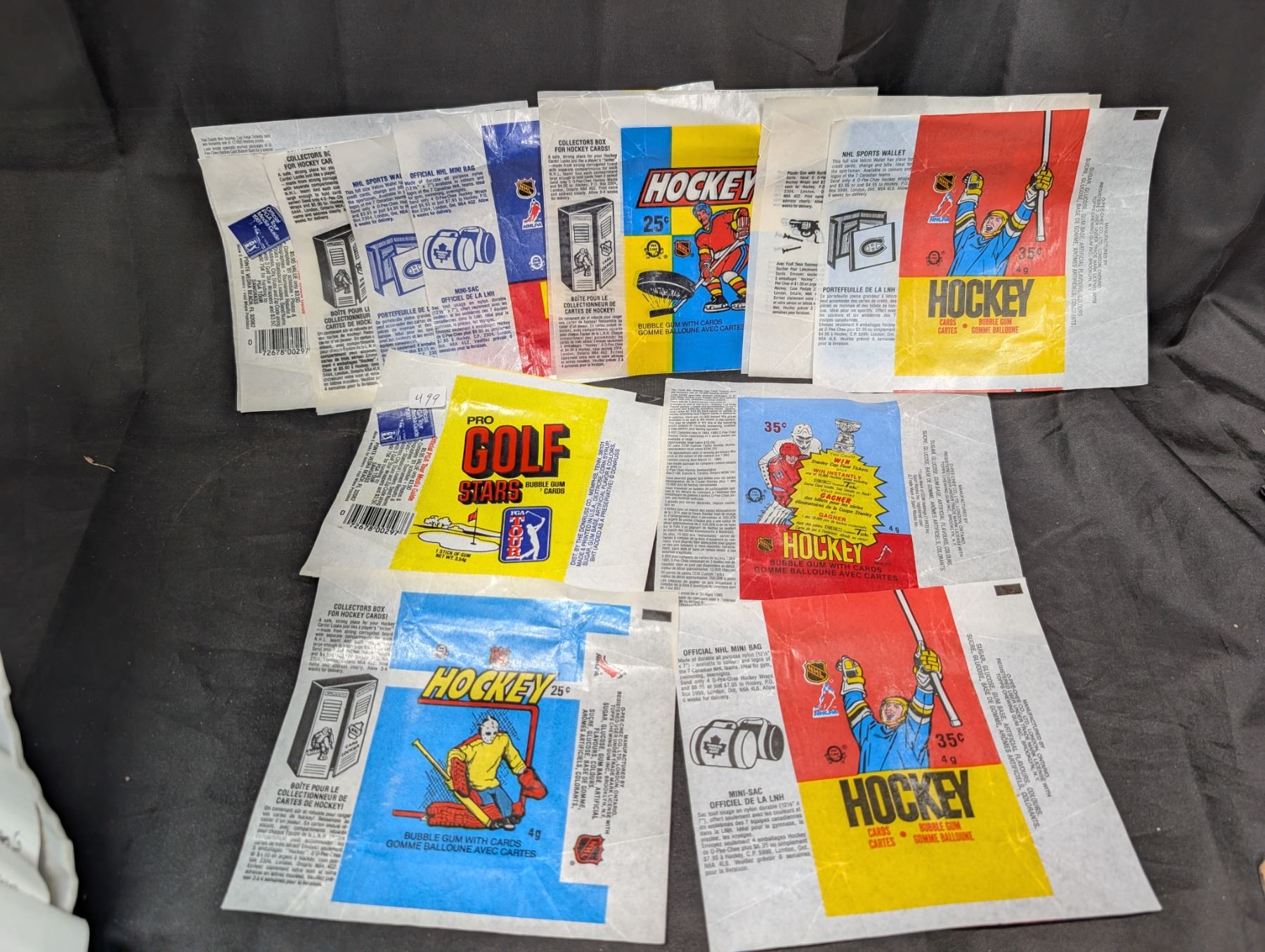 Lot of Vintage NHLPA Cards/Bubble Gum Wrappers + Golf All star Wrappers
