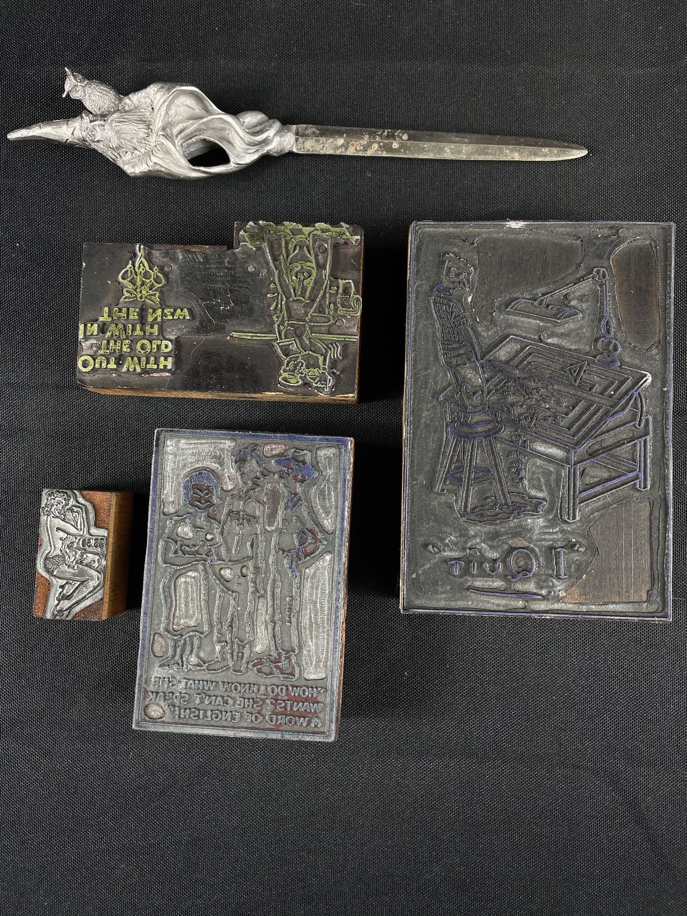 Lot of Vintage Printing Blocks and Wizard Letter Opener