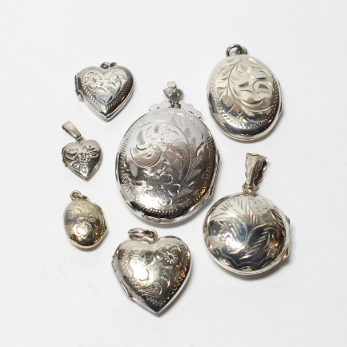 Lot of Vintage Sterling Silver Lockets. You will receive 7 Lockets in the collection with a total weight of 27.26 grams. 7pcs
