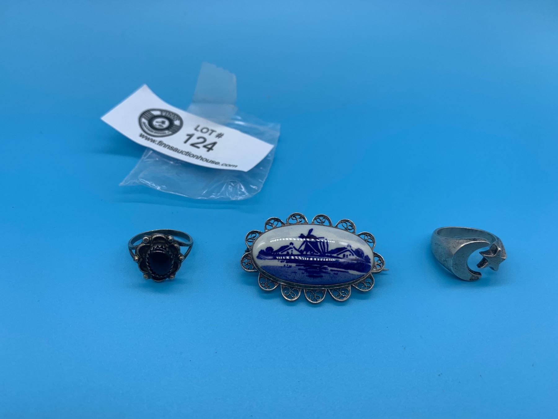 Lot of Vintage Sterling Silver Rings plus a Vintage Delft Pin
