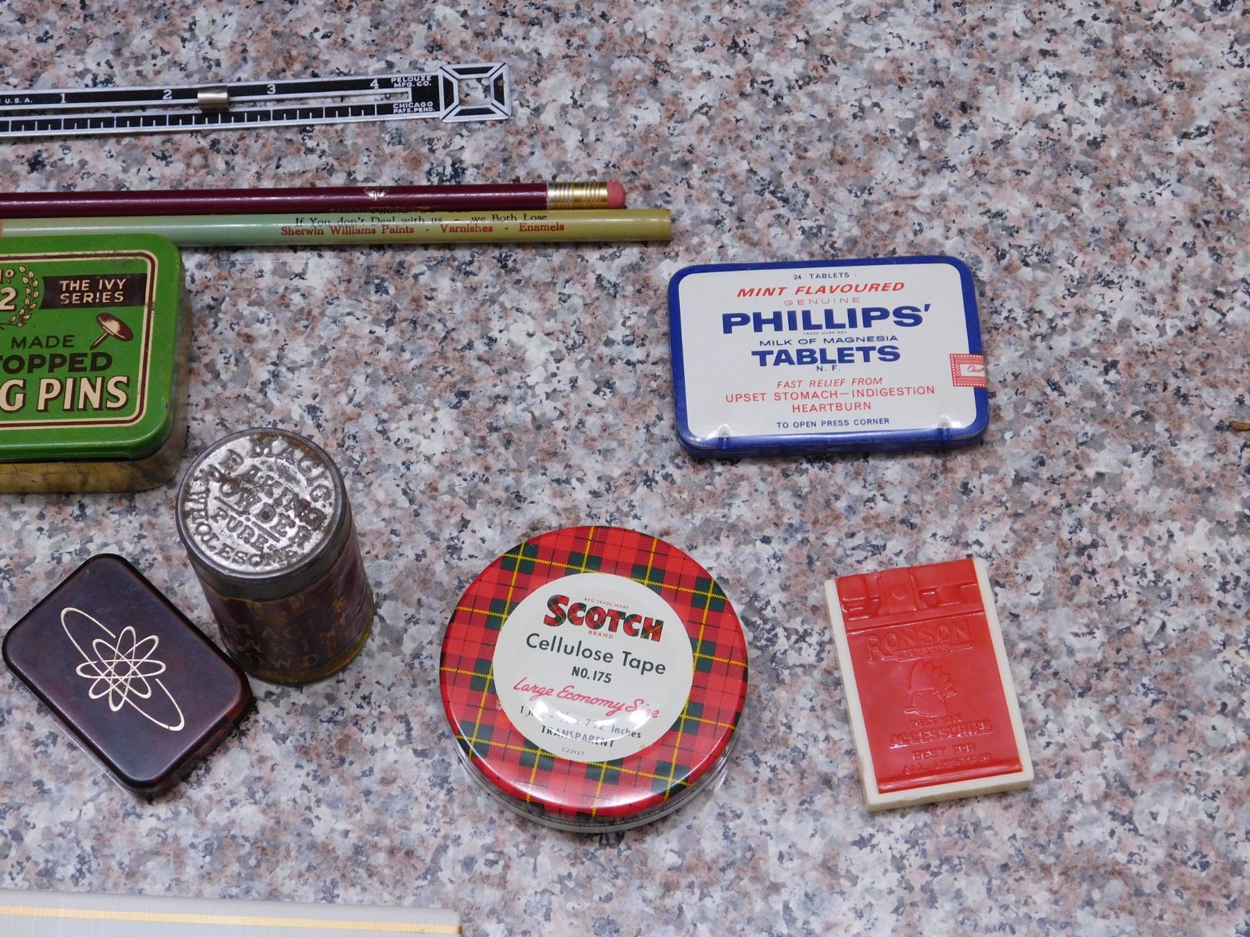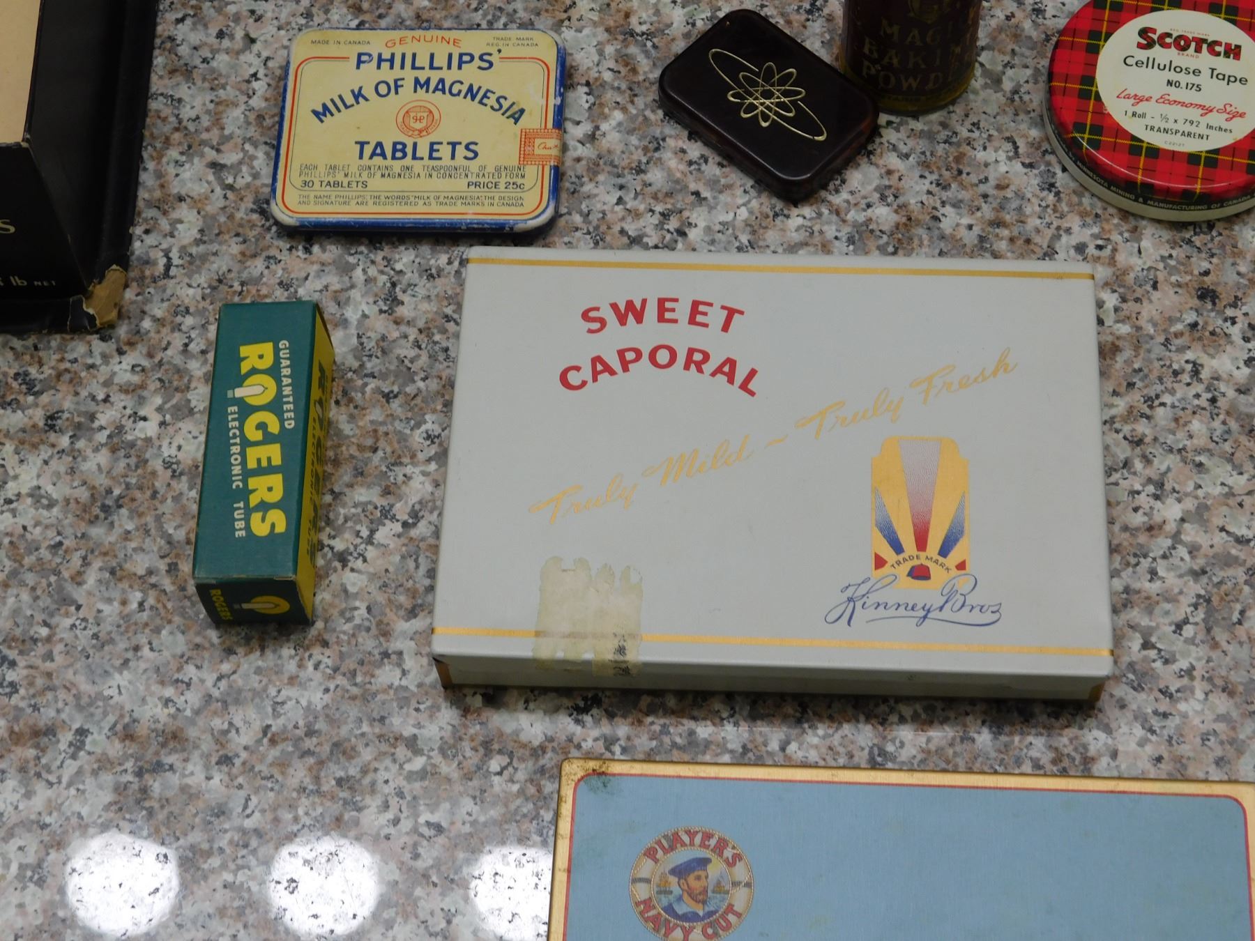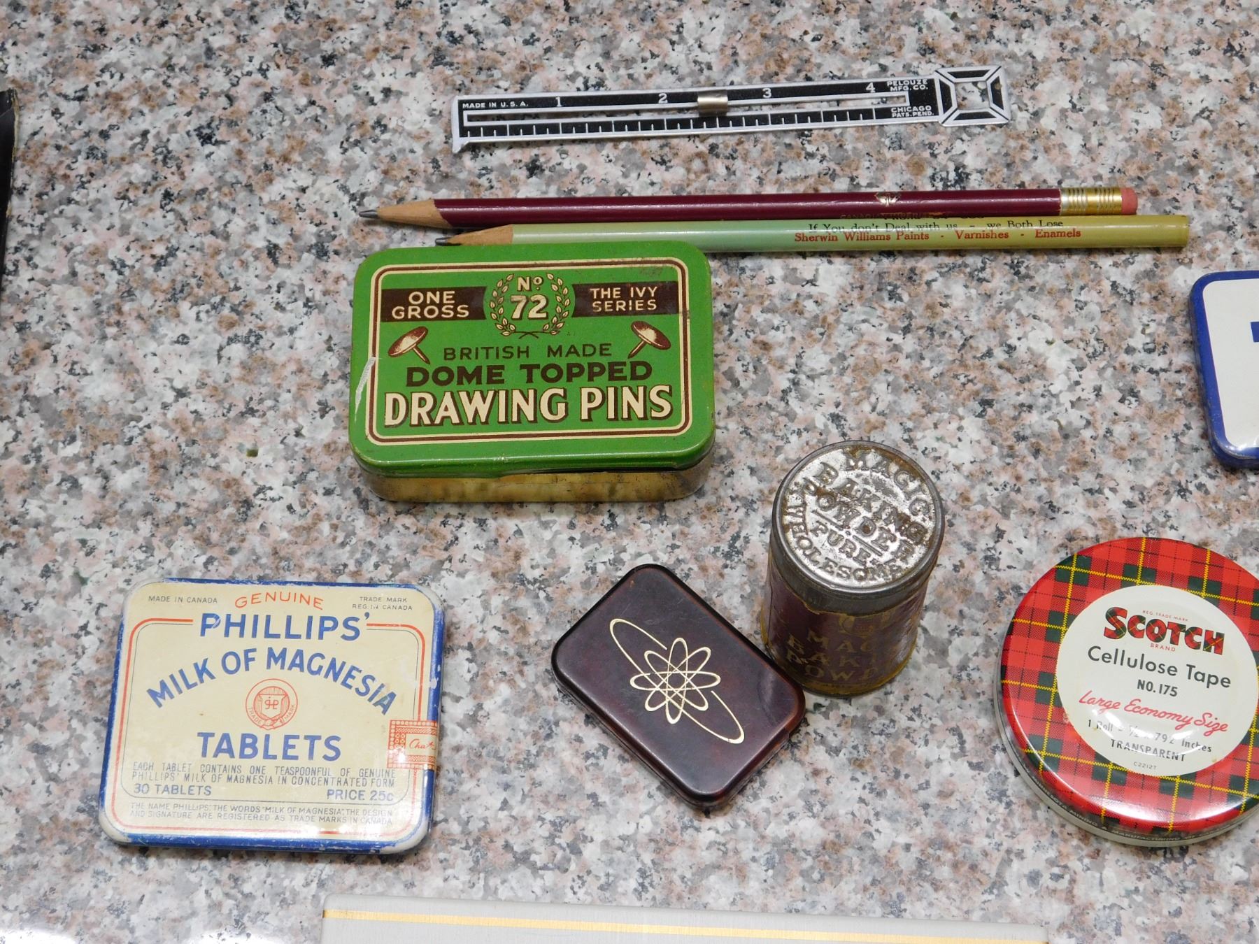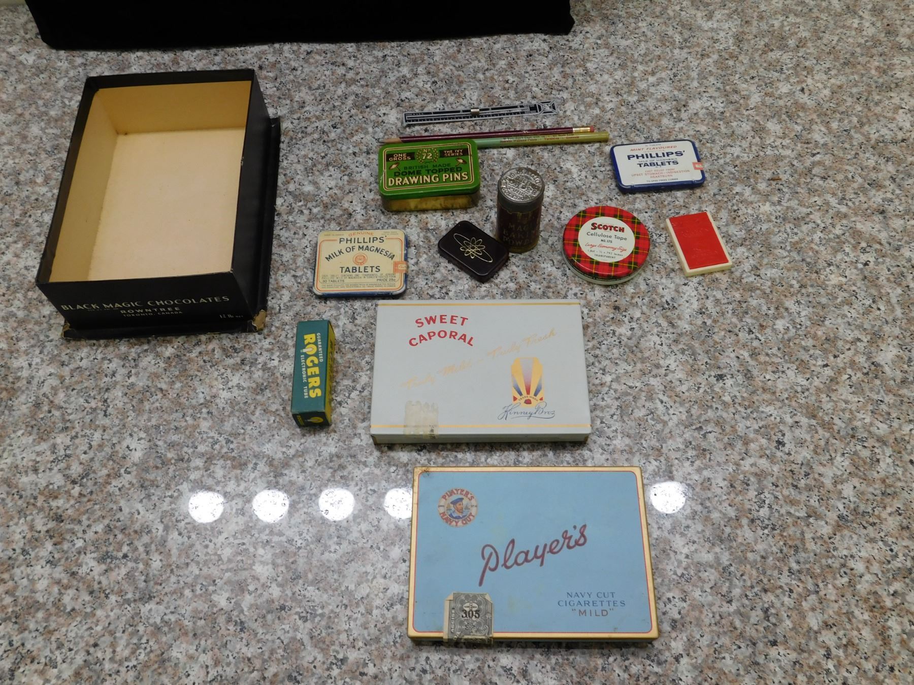 Lot of Vintage Tins, Tablets, Drawing Pins, Cigarette Boxes, Etc
