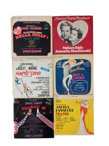 Collection of 9 vinyl records (12"x12"). This is an amazing collection of rare vinyl records featuring original cast albums and priceless collections from various eras and record labels. Includes, "Sweet Charity" Columbia Records, "The Pajama Game" Columbia Records, "House of Flowers" Columbia Records, "Mame" with Angela Lansbury from Columbia Records, "George M", Joel Grey, from Columbia Records, the original broadway cast recording of "Half a Sixpence" from Columbia Records, "Happy Time", from RCA Records, "Nelson Eddie", from Rca Records, "Hello Dolly", starring Carol Channing from RCA Records.