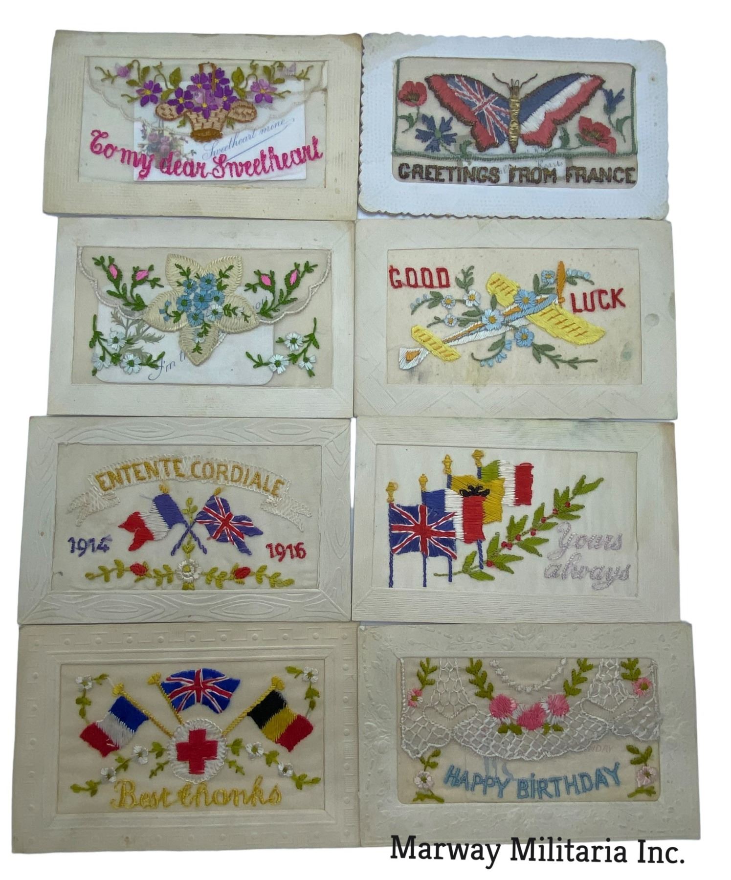 Lot of 12. AVC (Army Veterinary Corps). A lot of nice silk embroidered card from France. Many with the paper card inside. Many with handwritten messages on the back.