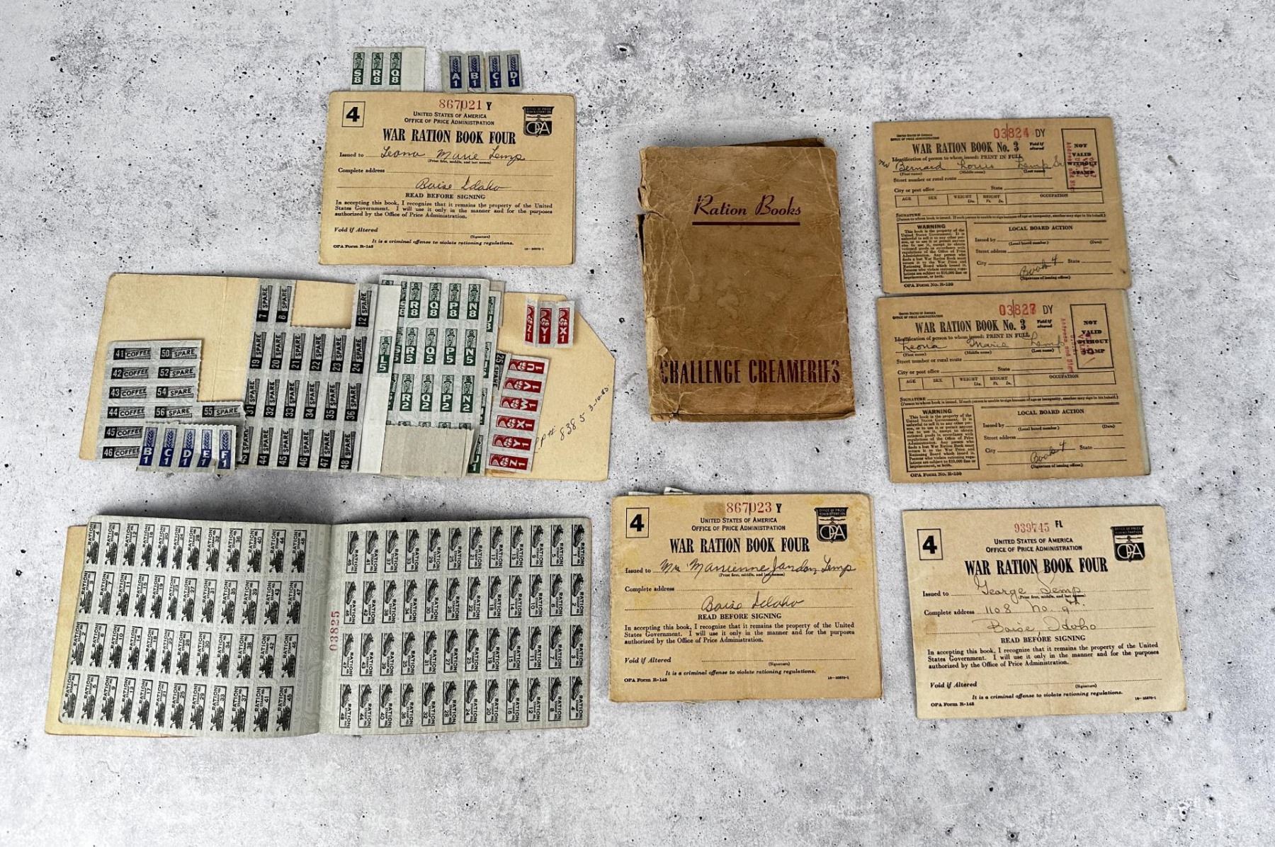 Lot of books and stamps / coupons in Challenge Creameries keeper. 6 1/2" by 4 3/4".