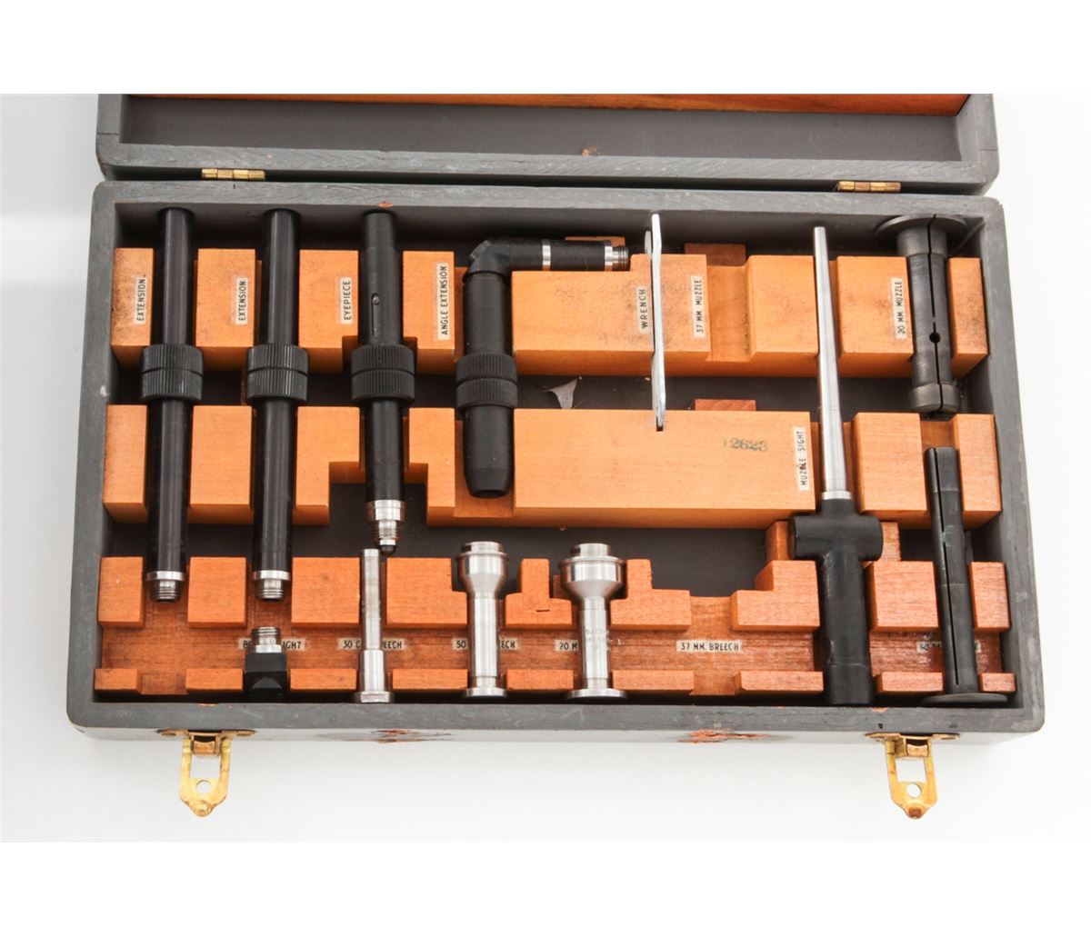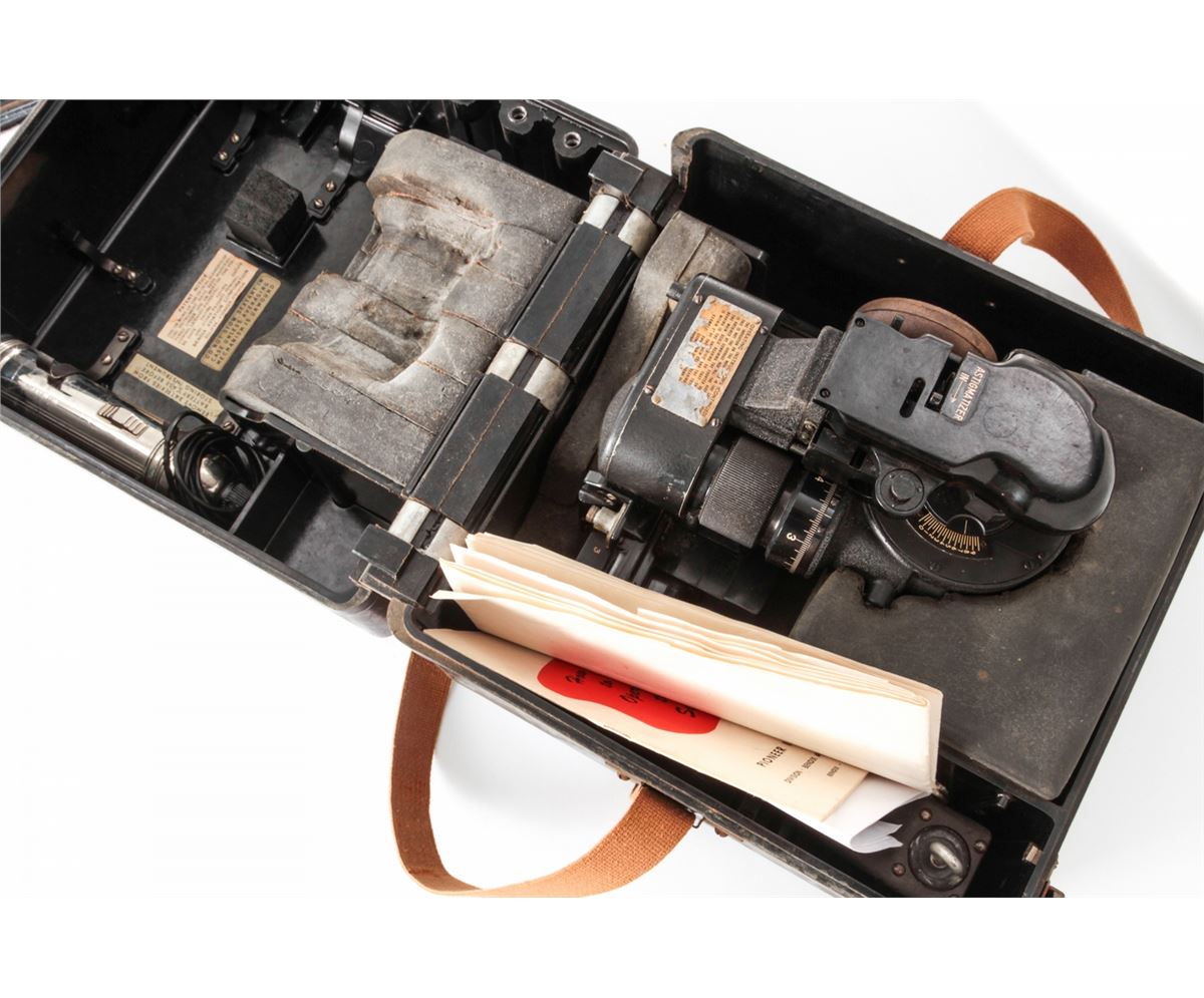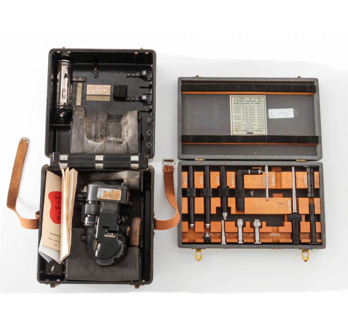 Lot of WWII U.S. Military Aviation Items: (1) U.S. Navy Bore Sighting Kit for various caliber weapons (37mm tools are missing and gray case missing handle). (2) AN-5851-1 Bubble Sextant for aircraft navigators, in original bakelite case with instructions and most accessories. Condition to both is very good. Est.: $200-$400/lot.