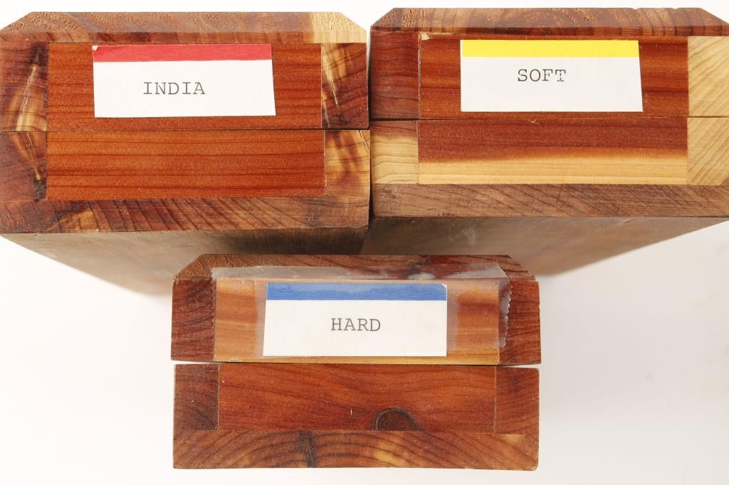 Three oilstones in boxes from Norton labeled soft, hard and combination India. Gatco kit has clamps and 5 grades of stones.