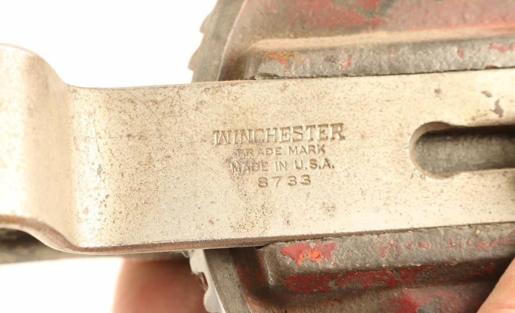 FAIR: Some major parts replaced; minor replacement parts may be required; metal rusted, may be lightly pitted all over, vigorously cleaned or re-blued; rounded edges of metal and wood; principal lettering, numerals and design on metal partly obliterated; wood scratched, bruised, cracked or repaired where broken; in fair working order or can be easily repaired and placed in working order.