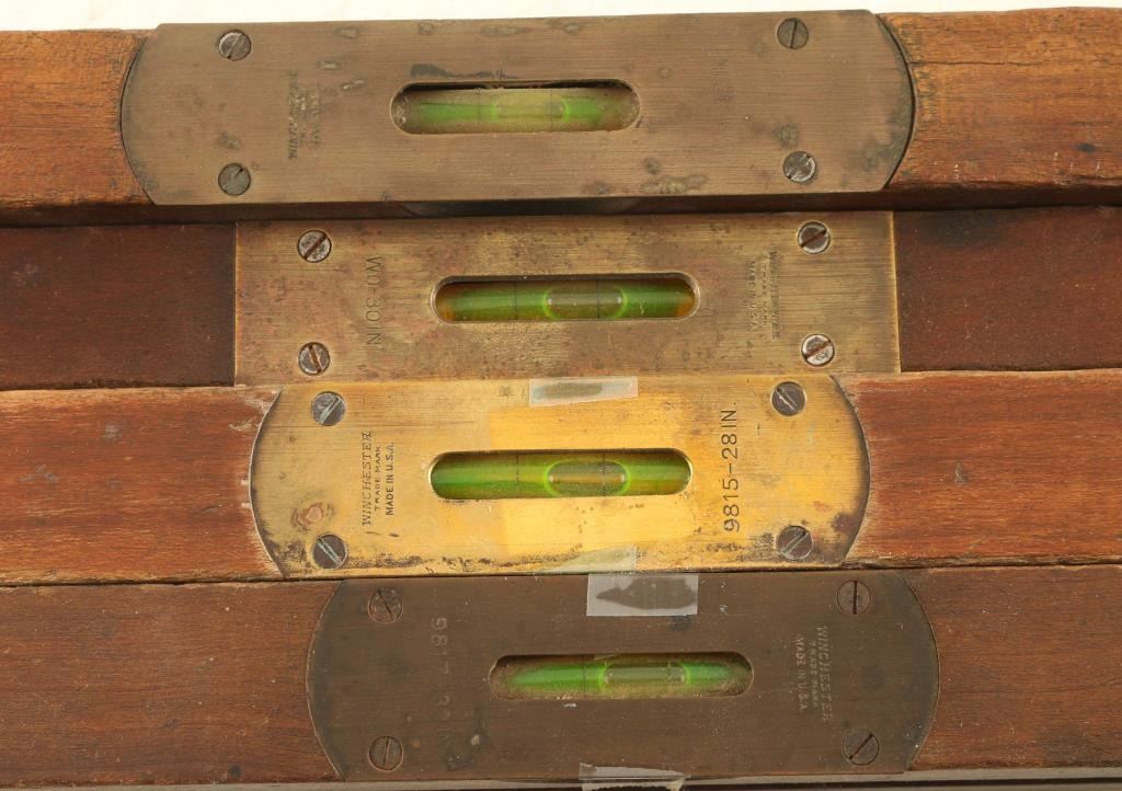 Includes (1) No. 9815, (2) WO/30 / No. 9817, and (1) W3/30 levels. All are made of seasoned hardwood and measure 30" in length. All in good condition.