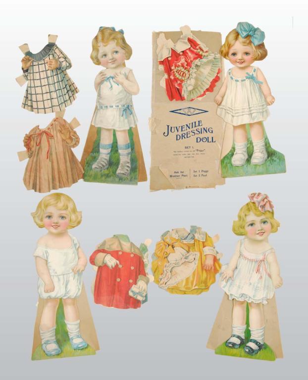 Description Circa 19teens. A large lot of 21-inch heavy cardboard dolls. These sets are played with and some are incomplete. The group is graded from fair to excellent.